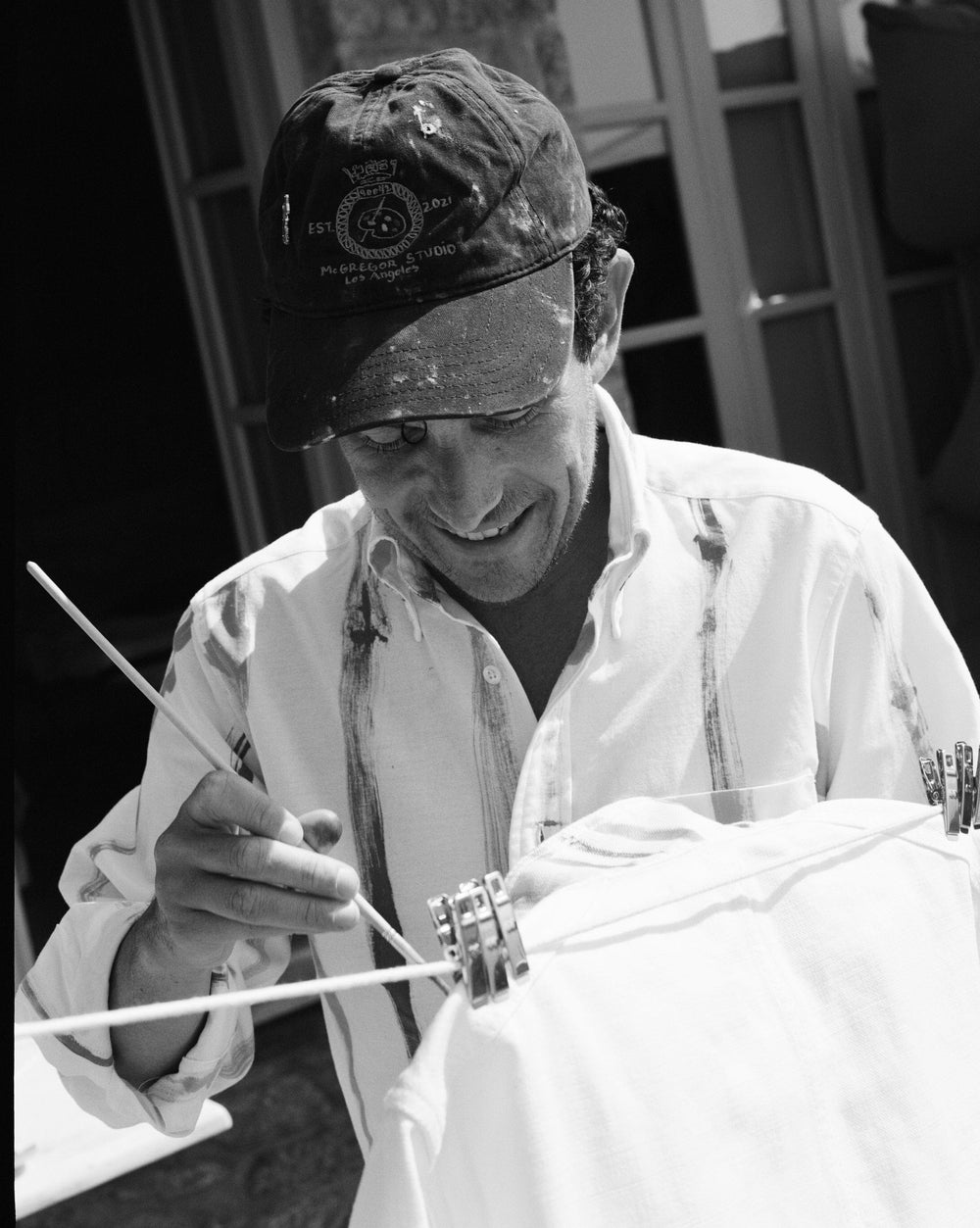 In the mornings, the town’s population swells with tourists decamping from the quick ferries and dead heat of Athens, crowding into the cafes and tavernas along the water. McGregor rents a bedroom and a studio nearby. He rises late and swims in the sea, he fills sketchbooks and jots down notes for future paintings. He often eats dinner at a restaurant run by a formidable woman called Tatsoula, who will happily throw inconsiderate or insolent diners to the curb if they break any house rules (we’d advise against feeding the local cats in her presence). He drinks at L’Americano and goes where the night takes him. A moveable feast.