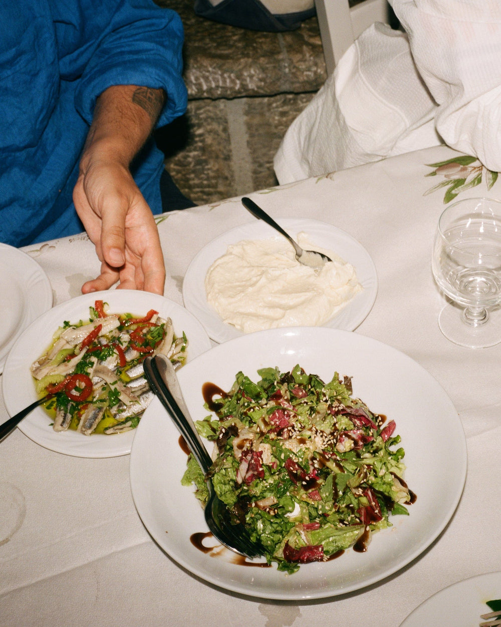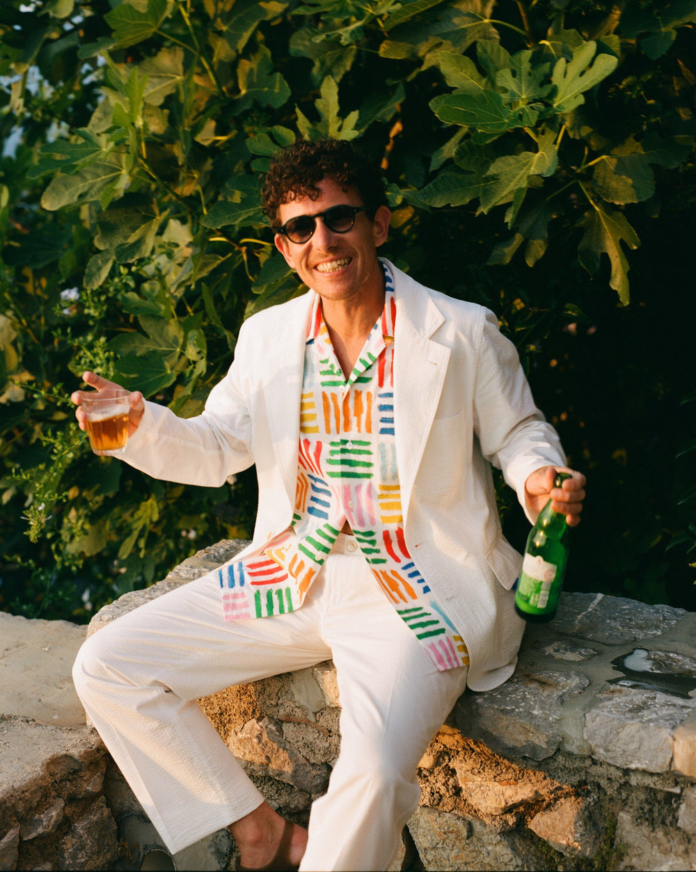 On the balcony of a house a short walk from where Cohen fell in love with the island and found his voice, we drink cold Alfas and amble down to the rocks, where you can dive straight into the sea, a late afternoon shimmer dancing on the water. He’ll be here for a little while longer, following a routine of joie d’vier, before LA, or Mexico City, London or Paris beckons. A show, a book launch, a quiet studio to piece it all together, an idea on a piece of hotel stationary.
