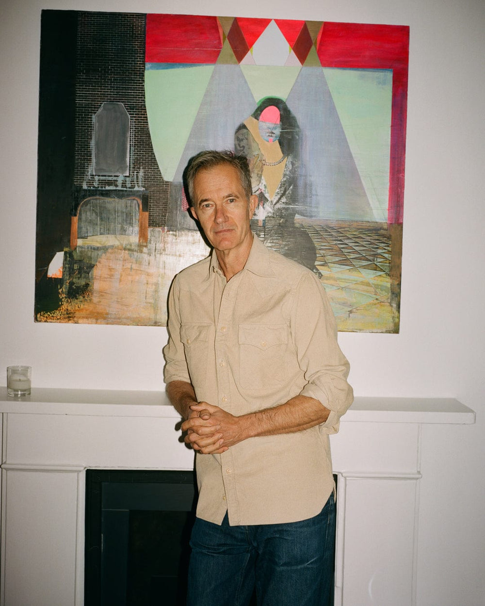 Geoff is strikingly tall. That evening at the reading, he’s visible across the incredibly busy room, a foot, easily, above everyone else. The reading’s been organised by Tom Willis’s very buzzy Soho Reading Series, which has deftly created hype and excitement around the often stereotypically quite dull idea of listening to writers read out their work. Geoff though, at the microphone, has the panache and presence of a stand-up comic. He reads a section from Homework about the time his dad tried to negotiate a discount for a tennis racket for him in Cheltenham, and a section of his novel Jeff in Venice, Death in Varanasi, about trying to use a cashpoint in India, before launching into an encore about wanting poetry readings to be over. They are very funny, but also very Dyer-esque, in that they are also about an individual and the world in a state of uneasy friction. He looks resplendent in his olive-coloured cord Drake’s suit.
