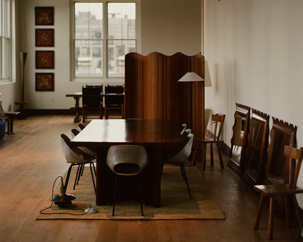 Formerly a fashion designer and DJ, he launched Somerset House in Williamsburg, Brooklyn, during the pandemic, and has since built a reputation for pairing iconic, mid-century pieces with covetable discoveries and unexpected finds.