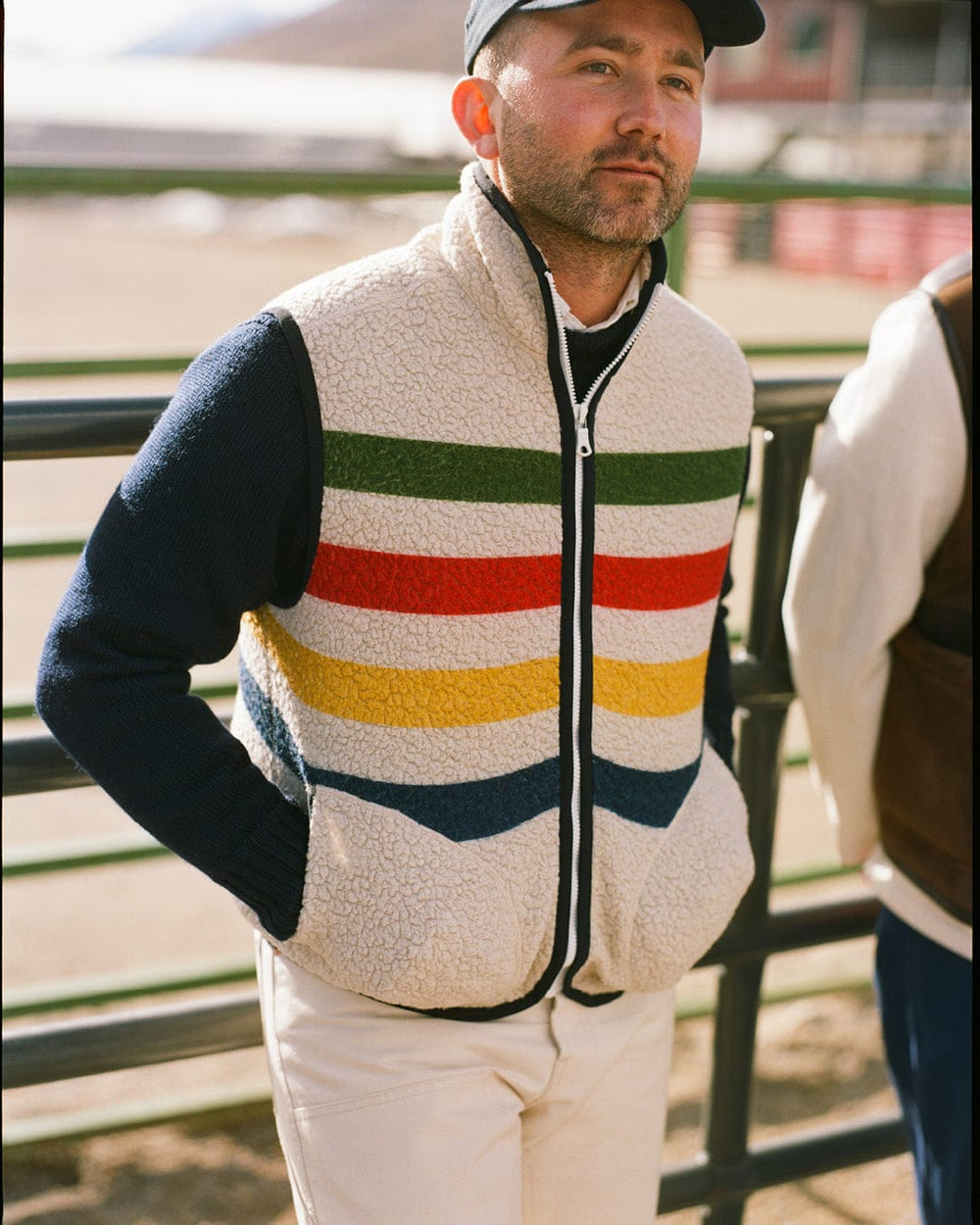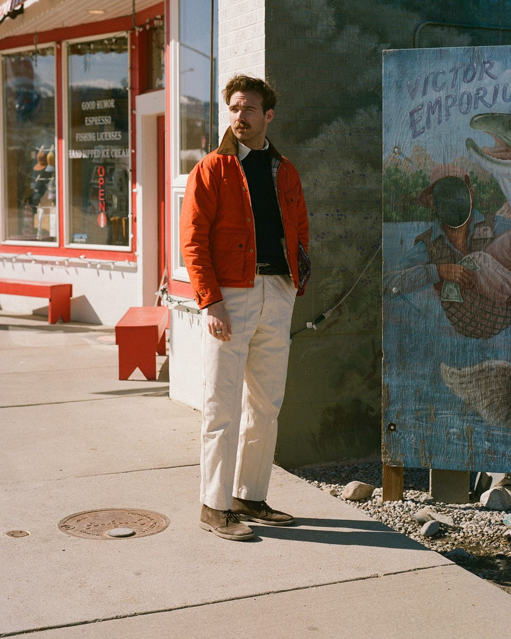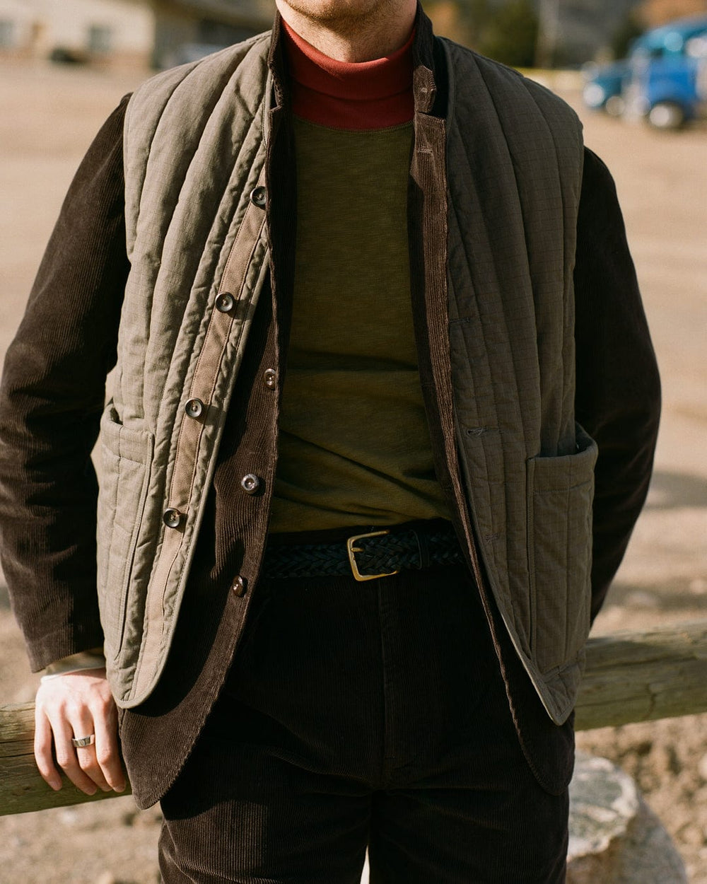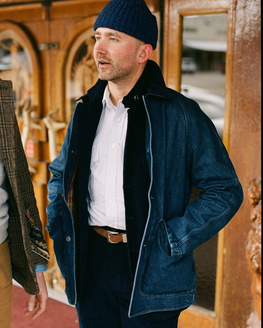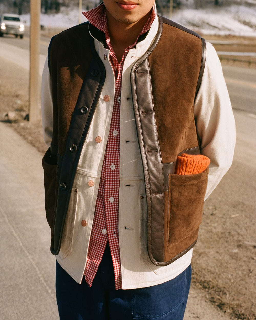 Wrapping up against the elements, highlights include Western shirts in gingham checks and textured cotton moleskin, sturdy carpenter trousers, cozy shearling vests, and a new cut of our signature Games suit that draws inspiration from this corner of the USA, with a throat latch and western-shaped pockets, along with a vintage-style corduroy edition.