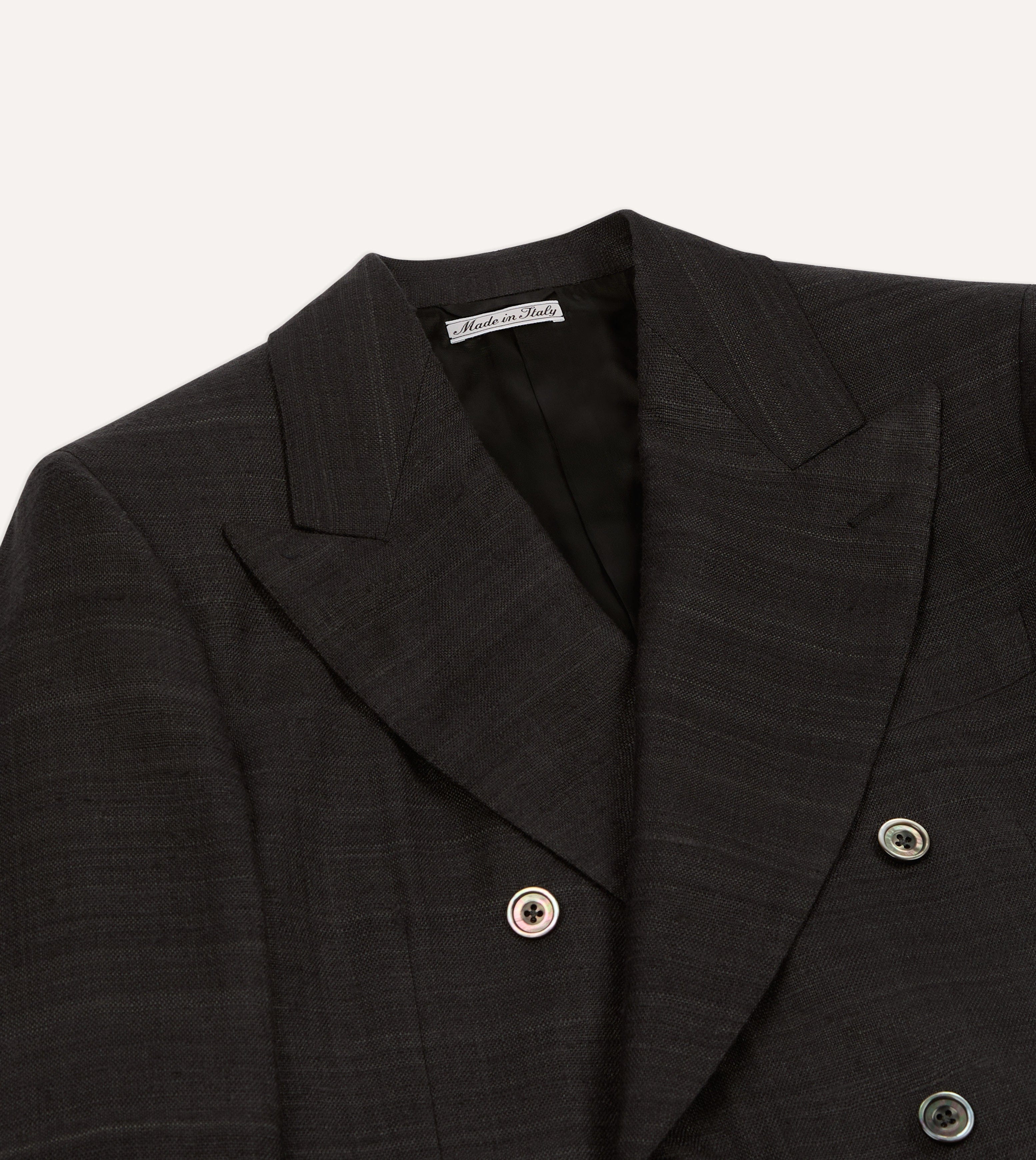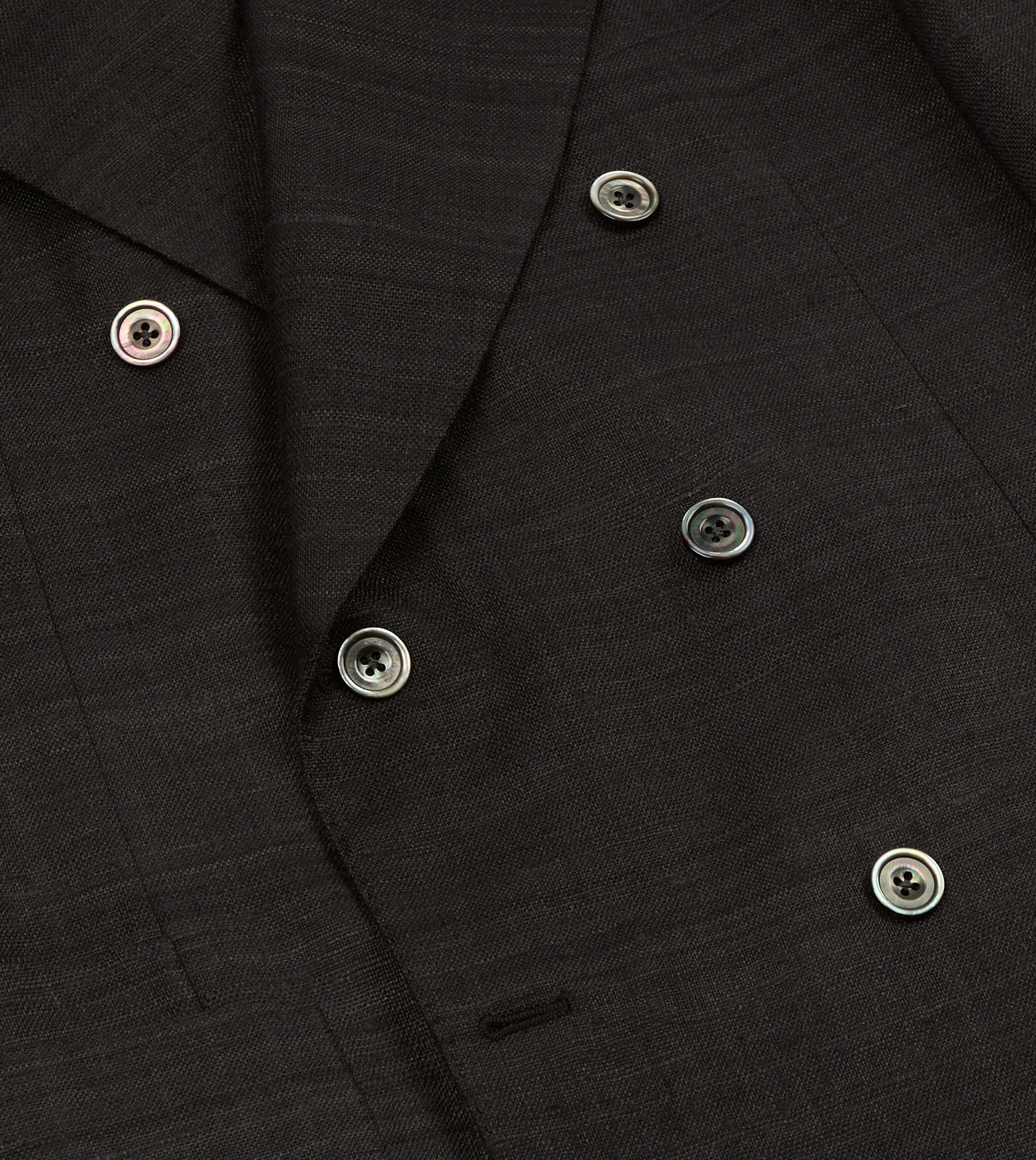 The double-breasted evening jacket brings with it all the ceremony of black tie, but in tussah silk it takes on a lighter, more expressive character. Softly tailored in the Drake’s house silhouette, with a natural shoulder and a gently bellied lapel, it retains the authority of formalwear while feeling effortless to wear.