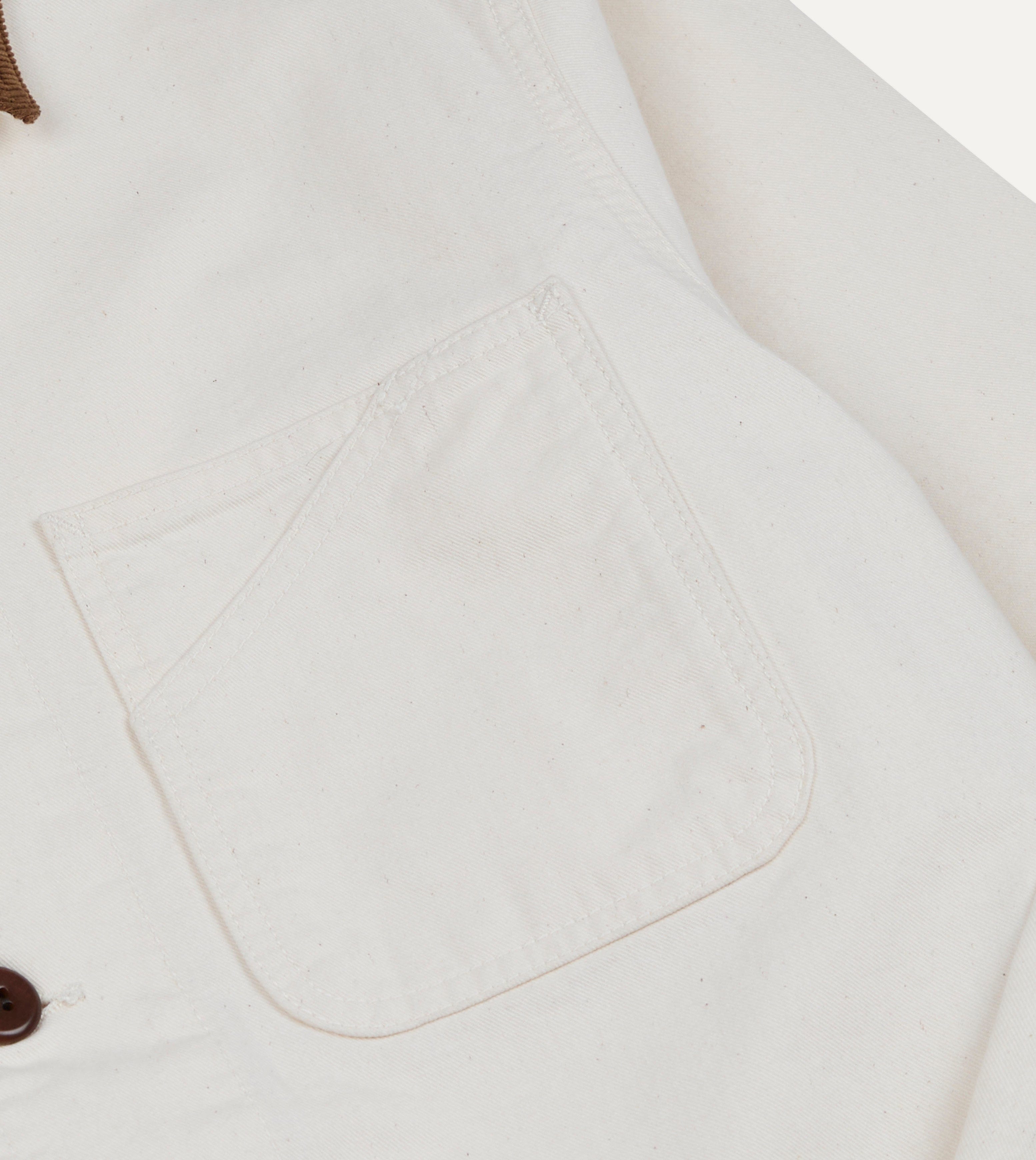Cut from 9.2oz Japanese cotton twill, the fabric offers durability with a pleasingly tactile handle, complemented by a corduroy collar that adds quiet contrast and a touch of comfort.