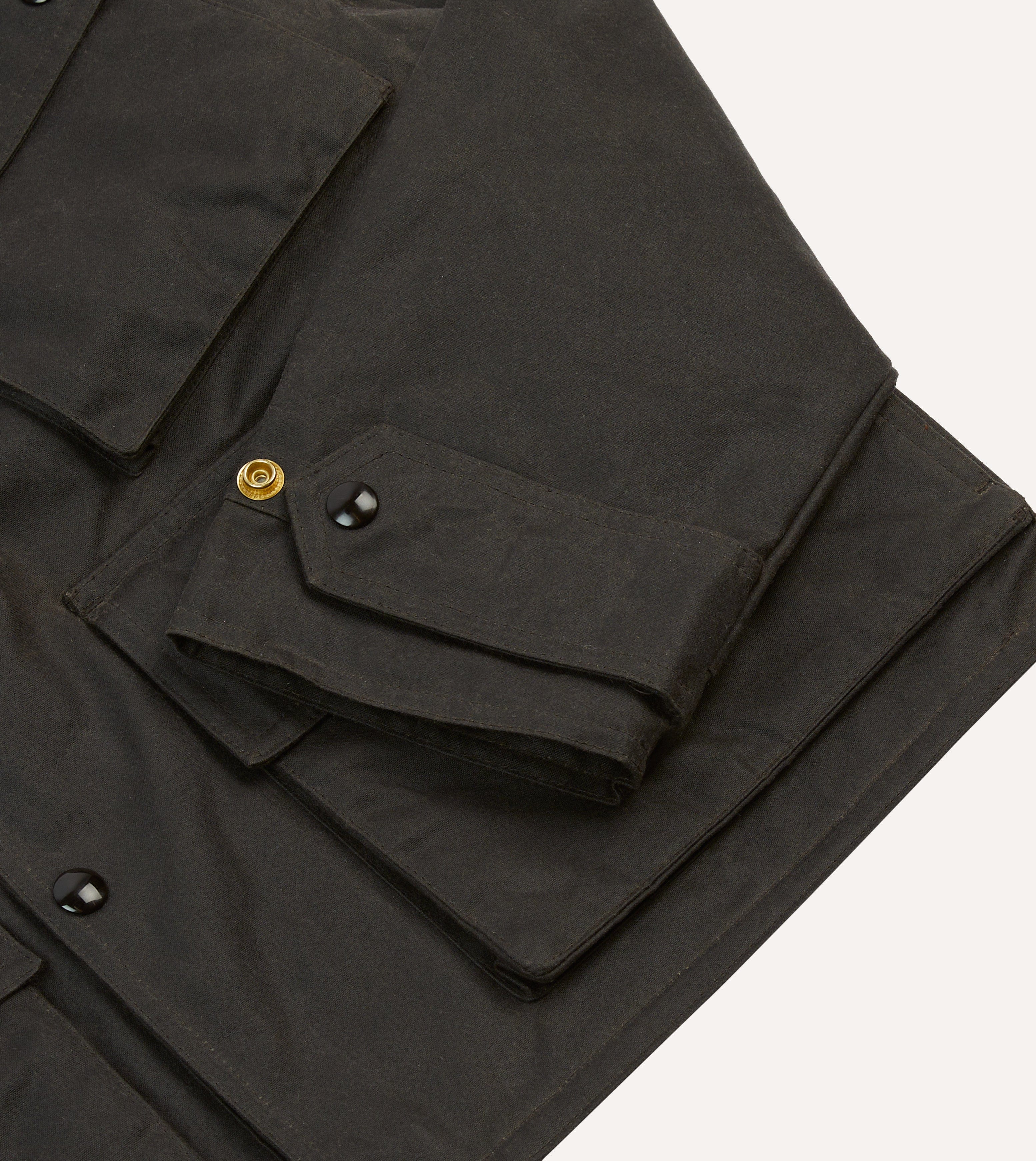 The Wader is a cousin to our popular Coverall jacket, borrowing the same easy, boxy silhouette but reimagined through the lens of classic fly-fishing attire. Made in Italy from Scottish dry-waxed cotton, it’s cut short and slightly square, with a mid-wale corduroy tab collar, welted pockets with snap tabs, a sturdy double zip, and a rear poacher pocket.