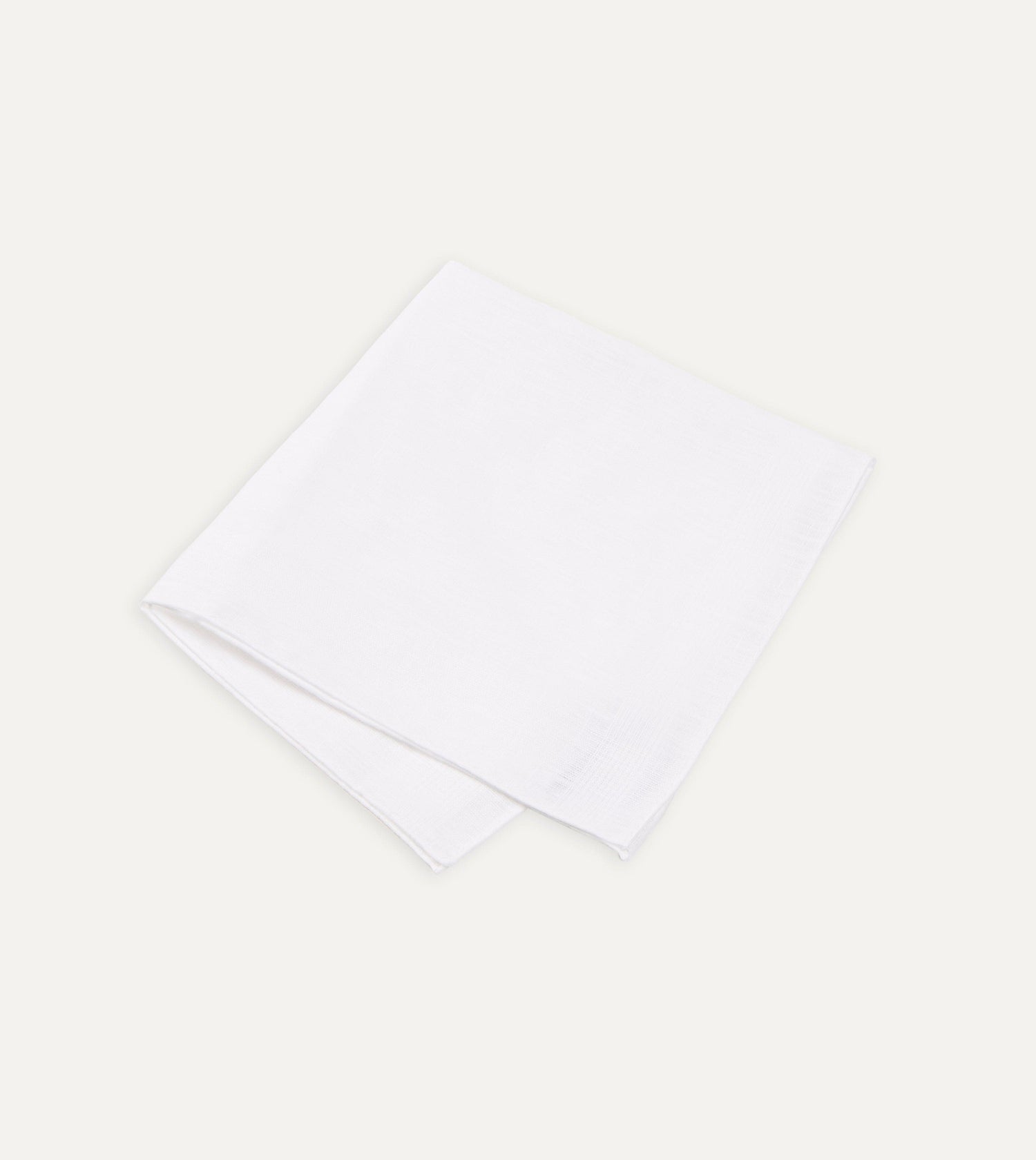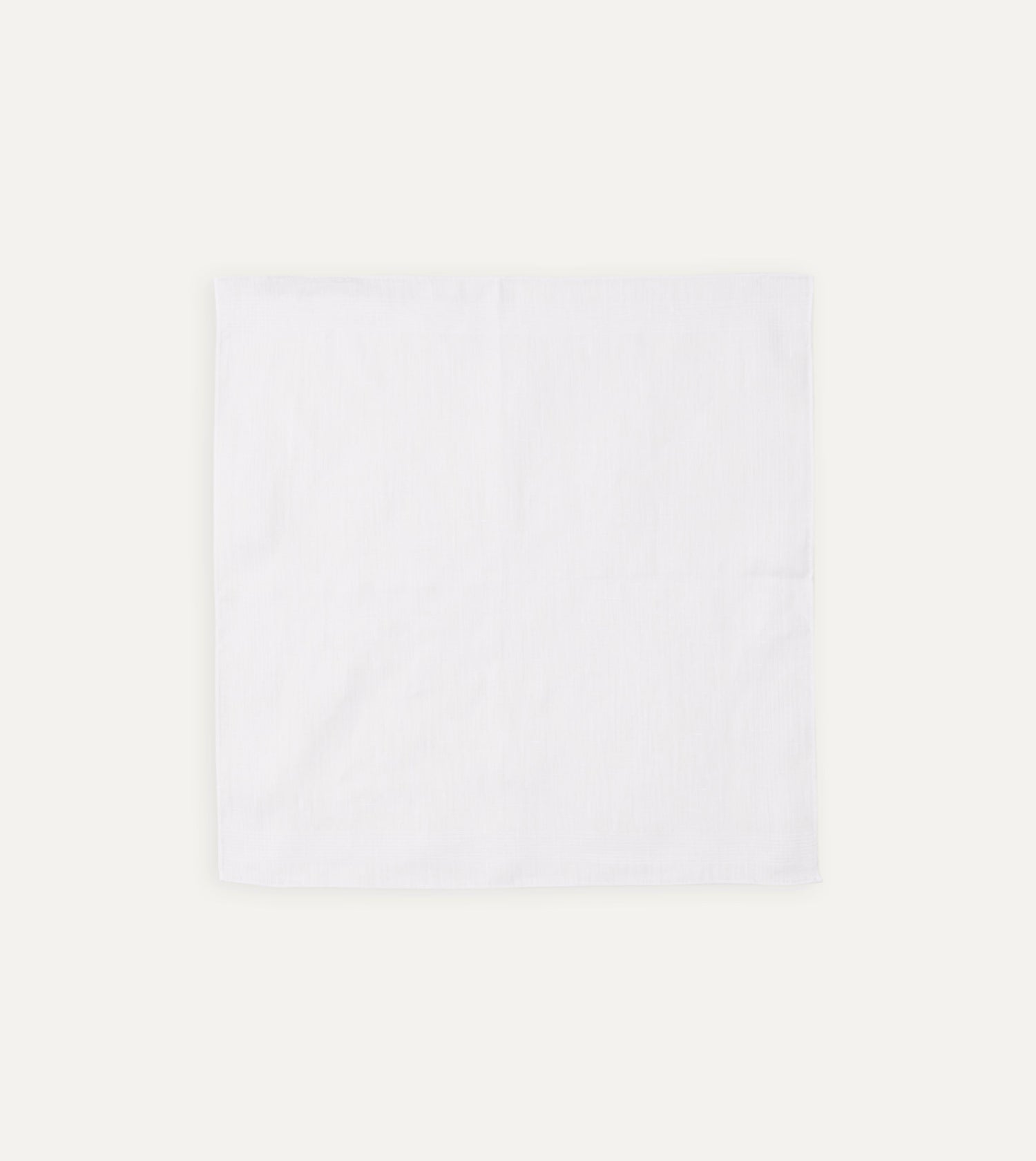 If you were to have just one pocket square in your drawer, this would be it. A plain white linen hank will add the finishing touch to any jacket you'd care to think of. This one has a tonal embroidered border for a little added interest.