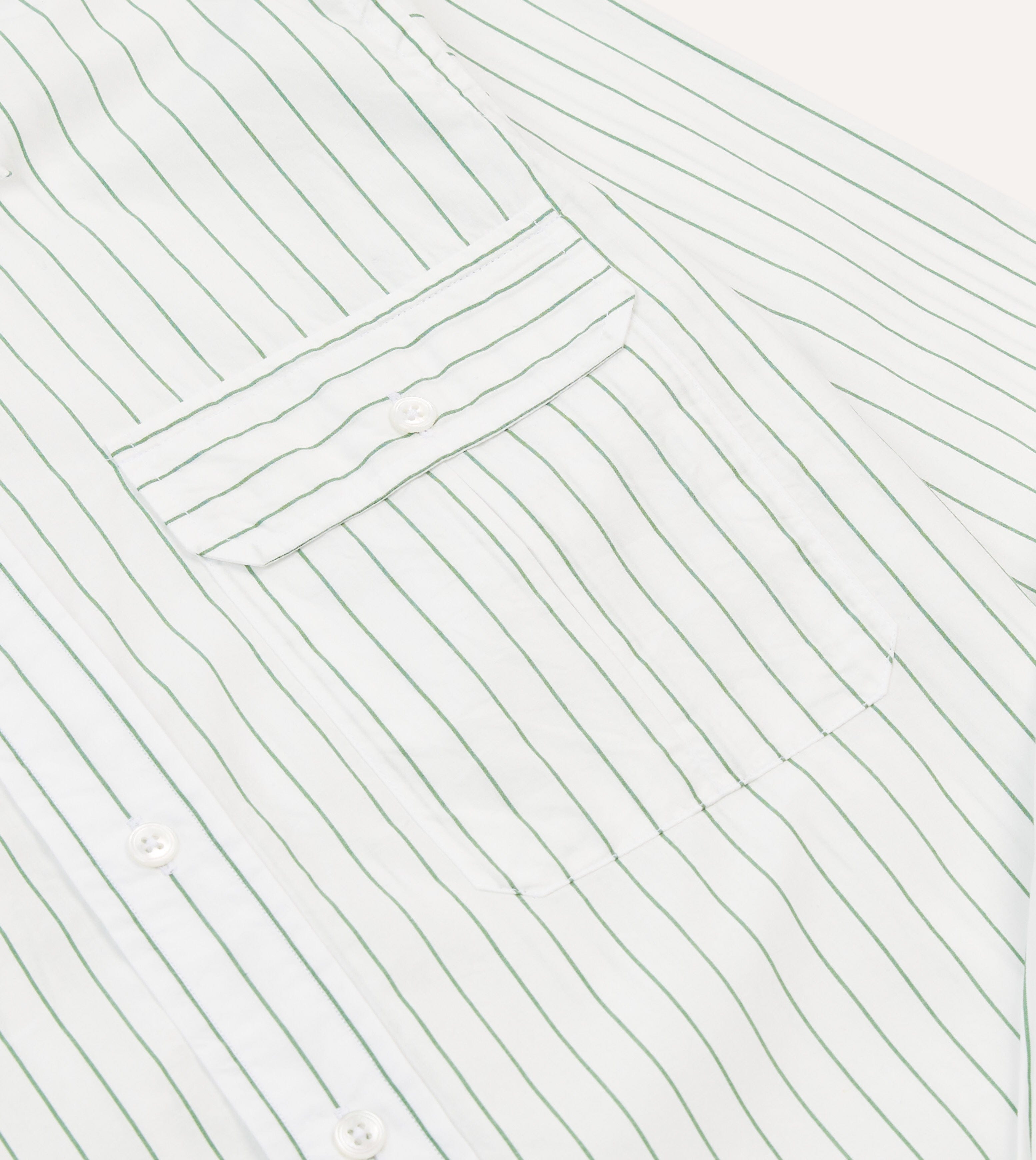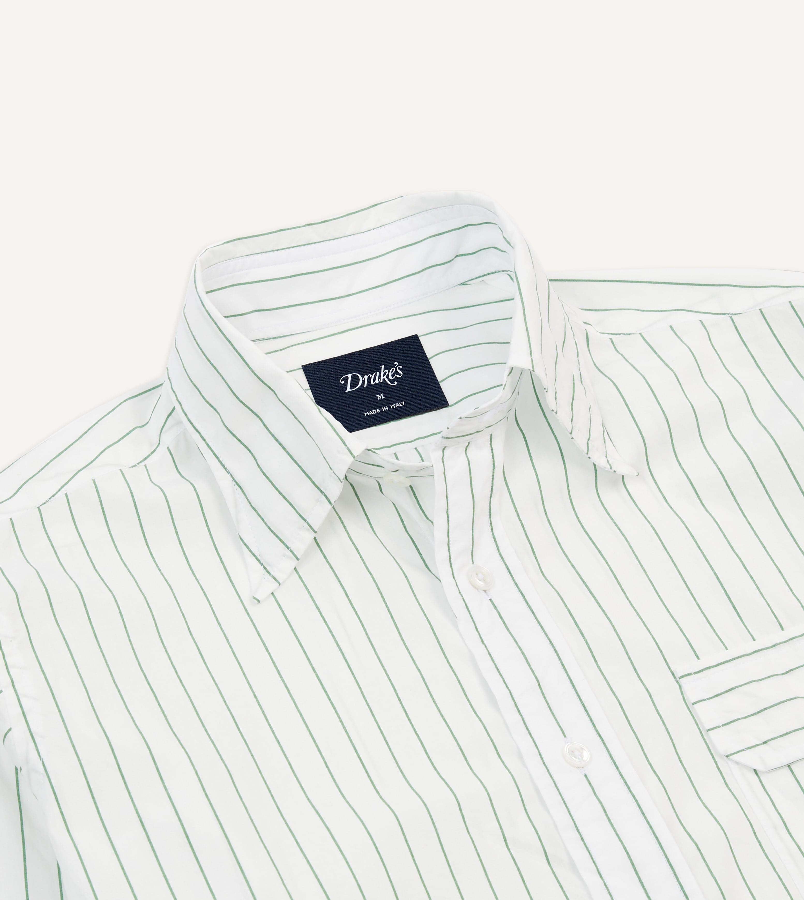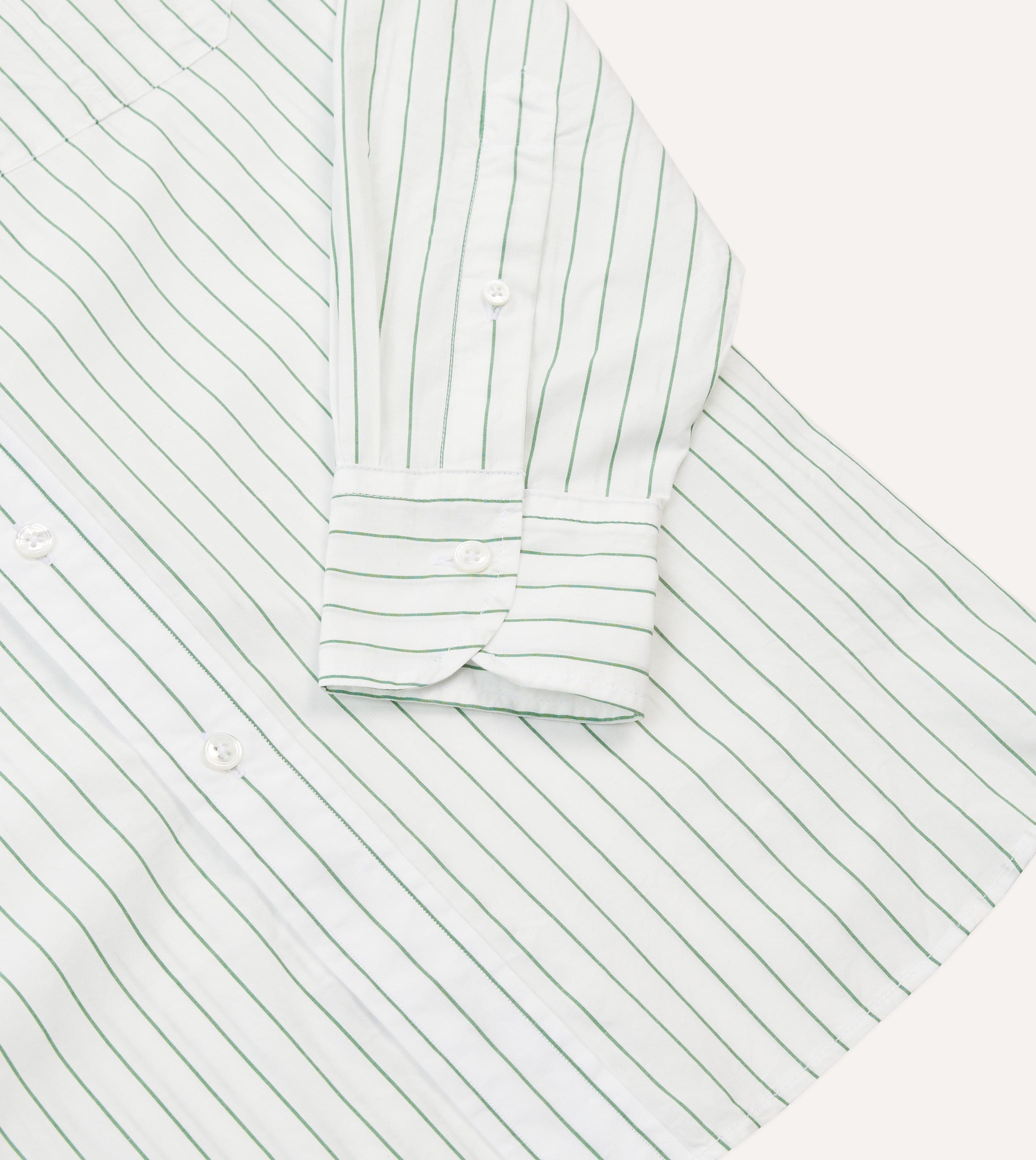 Cut on our casual block for an easy, relaxed fit, this shirt combines subtle refinement with a touch of vintage charm. The fine green pencil stripe lends character without overpowering, while the elongated point collar nods to classic mid-century shirting.