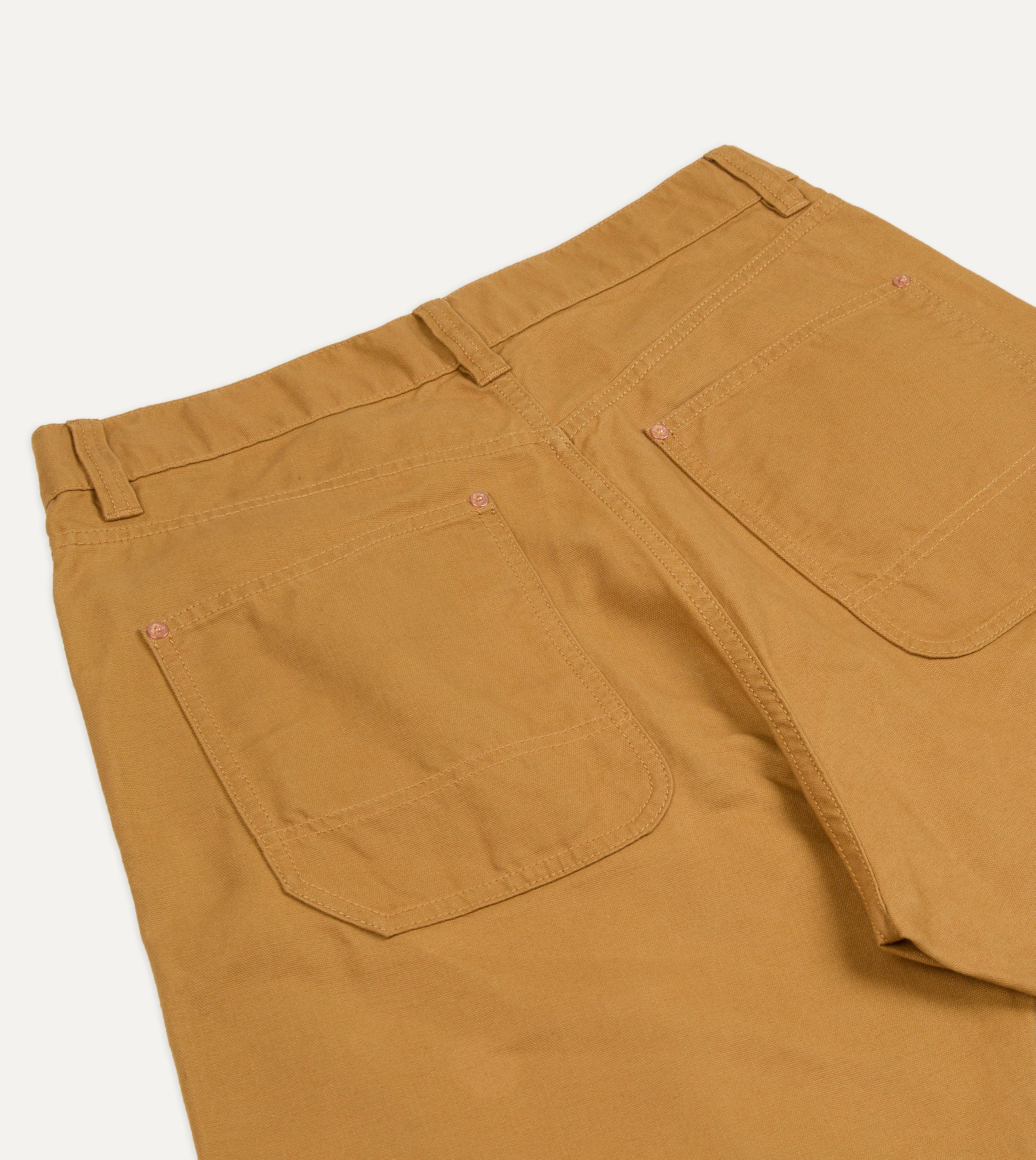 The carpenter trouser (or ‘pant’ over the pond) was originally a workwear workhorse, and this design follows suit with double-knee construction, where reinforced sections were designed to endure the demands of workshop use. Twin-needle stitching carries that same spirit of utility, while slanted side pockets, copper rivets, belt loops, and a handy utility pocket provide both practicality and ease.