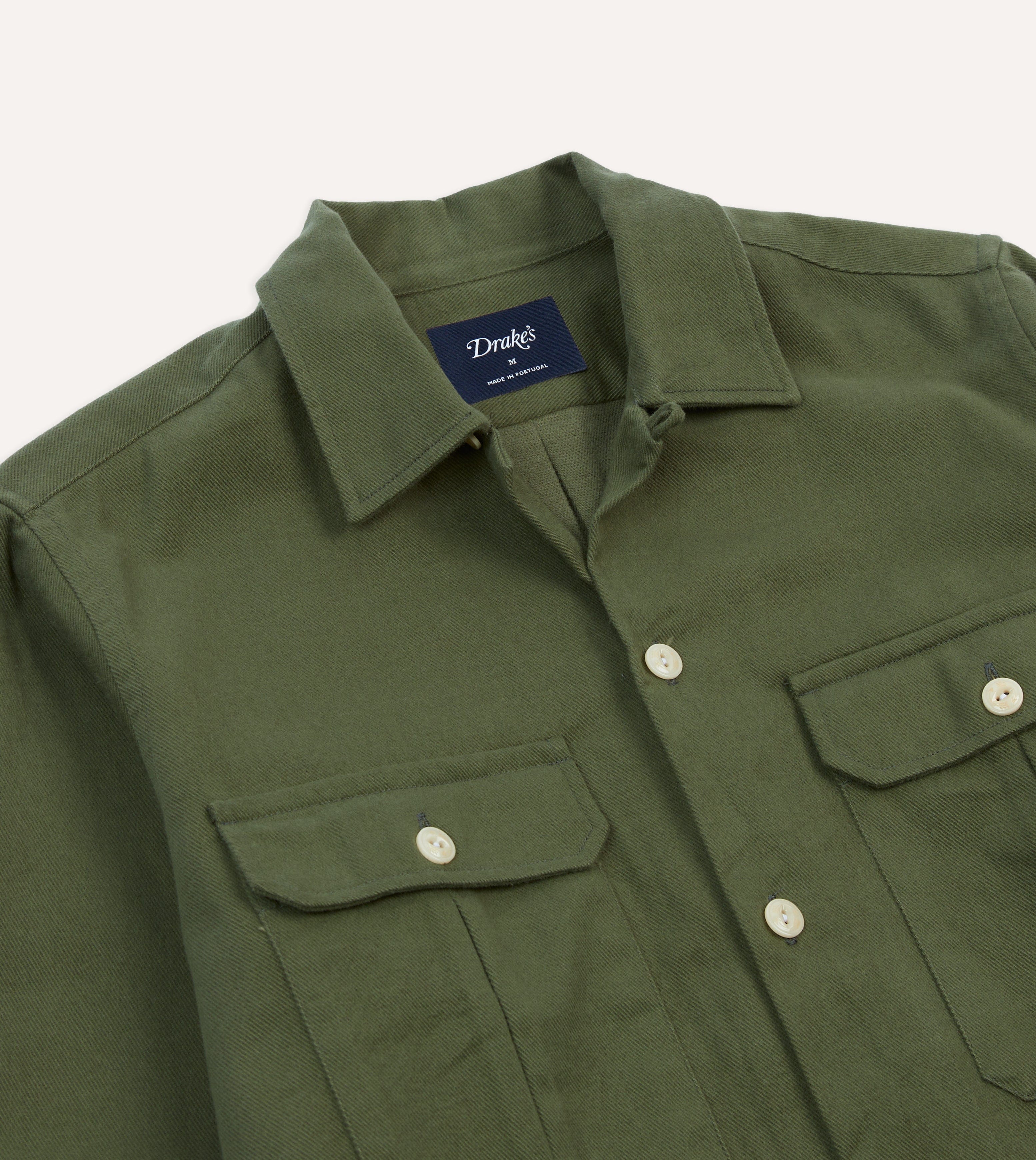 Olive Brushed Cotton Twill Two-Pocket Camp Collar Work Shirt