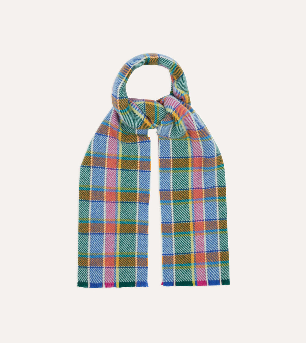 Woven in Tuscany, Italy, this scarf in an archival tartan check is a warming and lustrous addition to your cold weather wardrobe. The highest-quality virgin wool fibres with natural temperature regulating properties keep things cosy, while the eyelash fringe and tonal colouring can be applied to a wealth of looks, ideal for adding a subtle sense of Highlands charm to an ensemble.