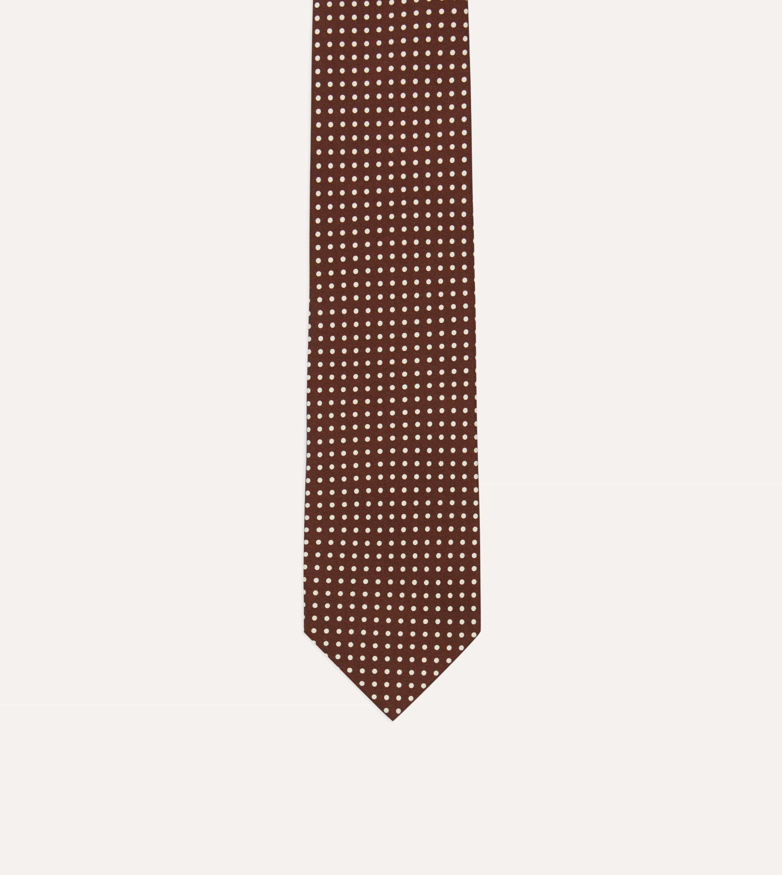 Brown Small Spot Silk Self-Tipped Tie