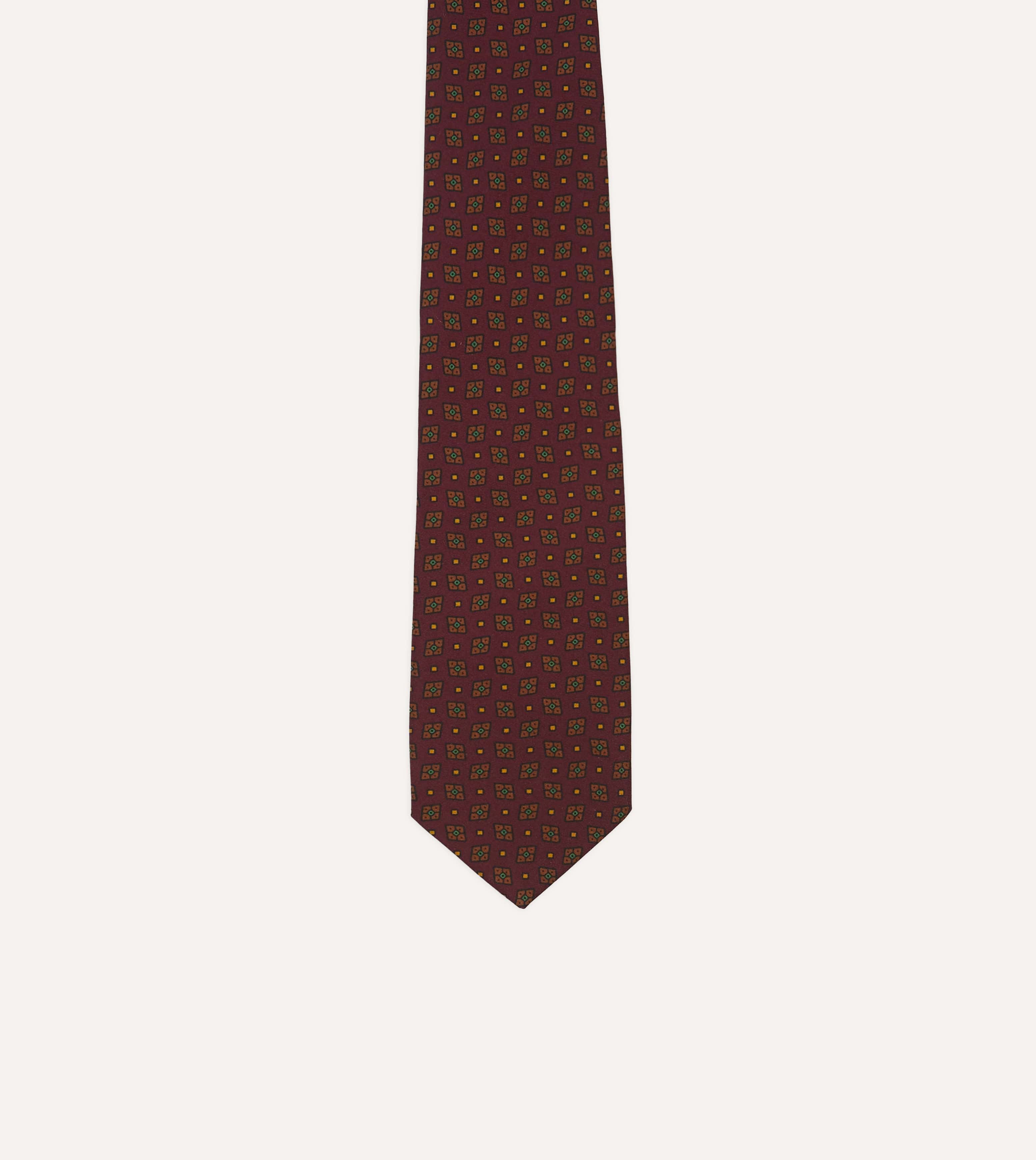 Burgundy Medallion Print Silk Twill Self Tipped Tie