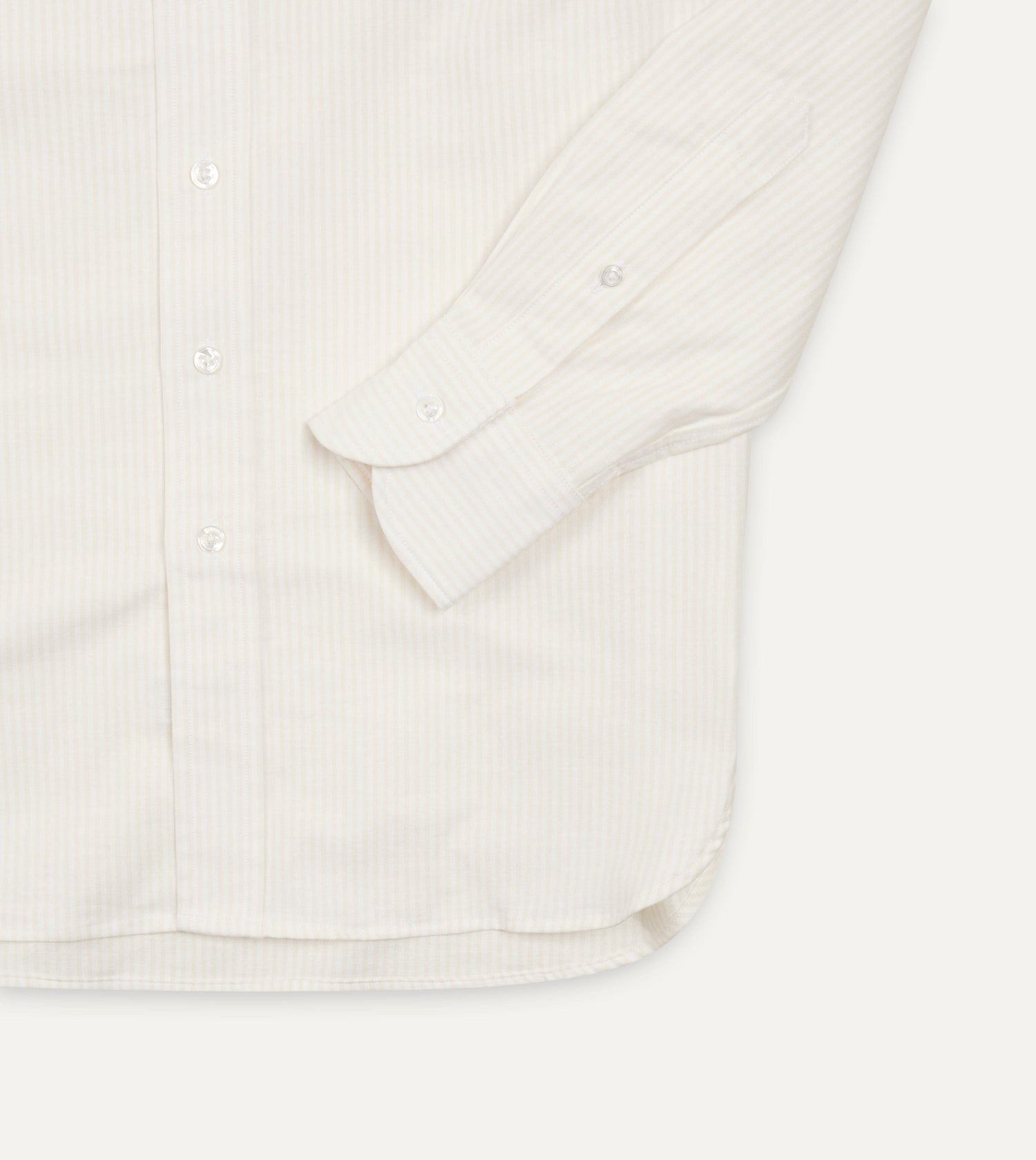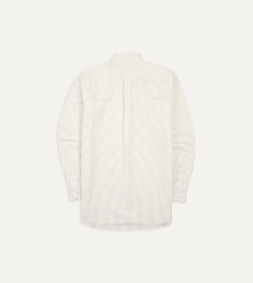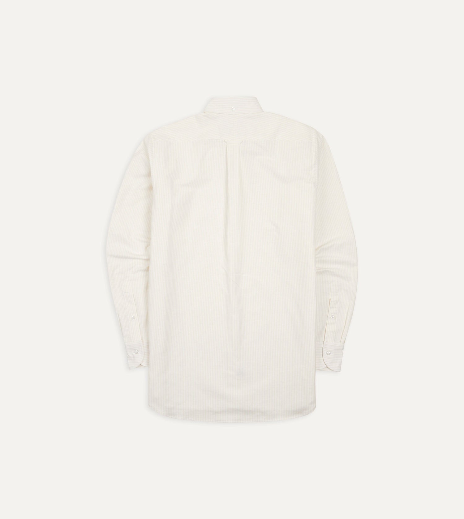 Cream Ticking Stripe Cotton Oxford Cloth Button-Down Shirt