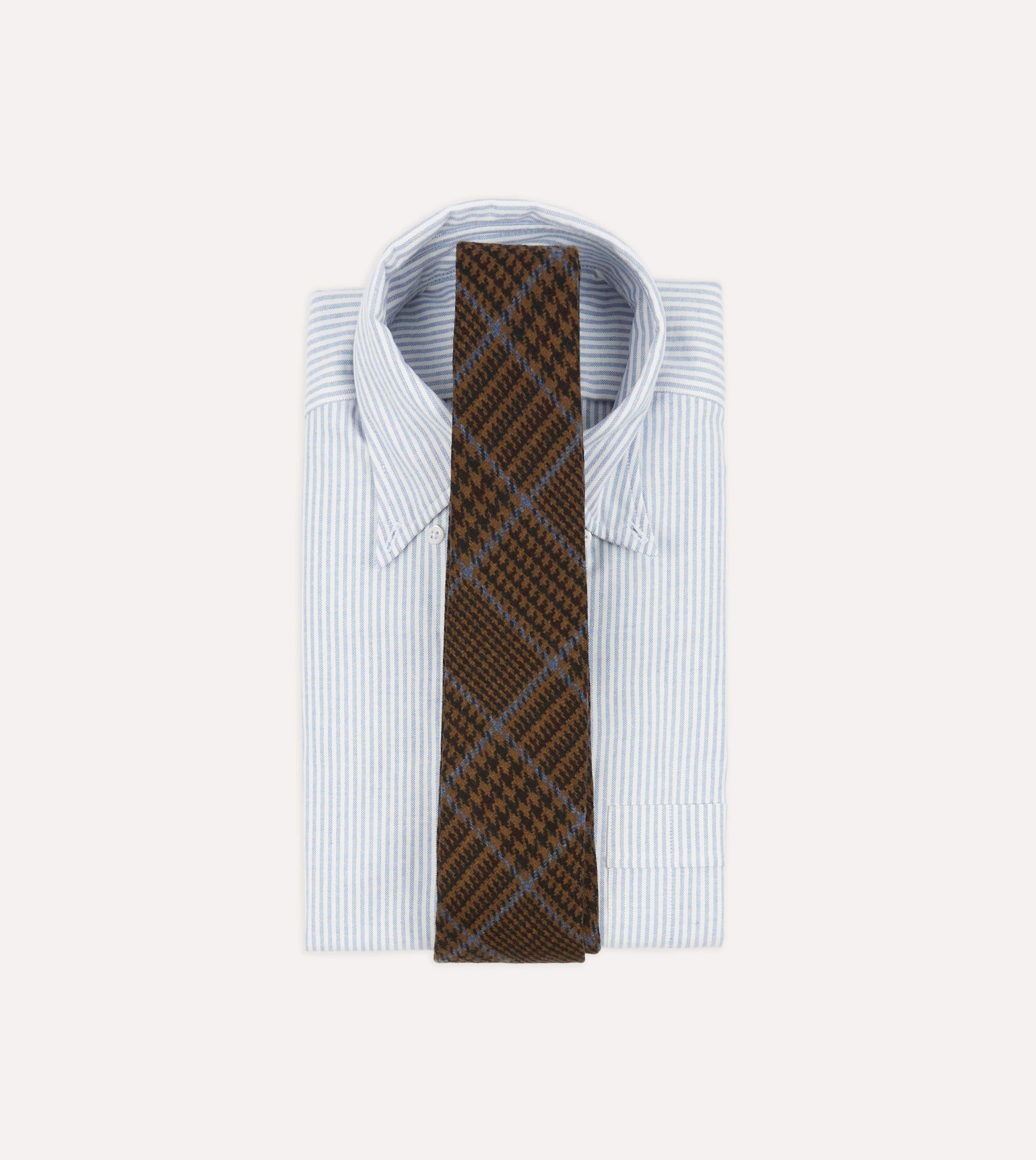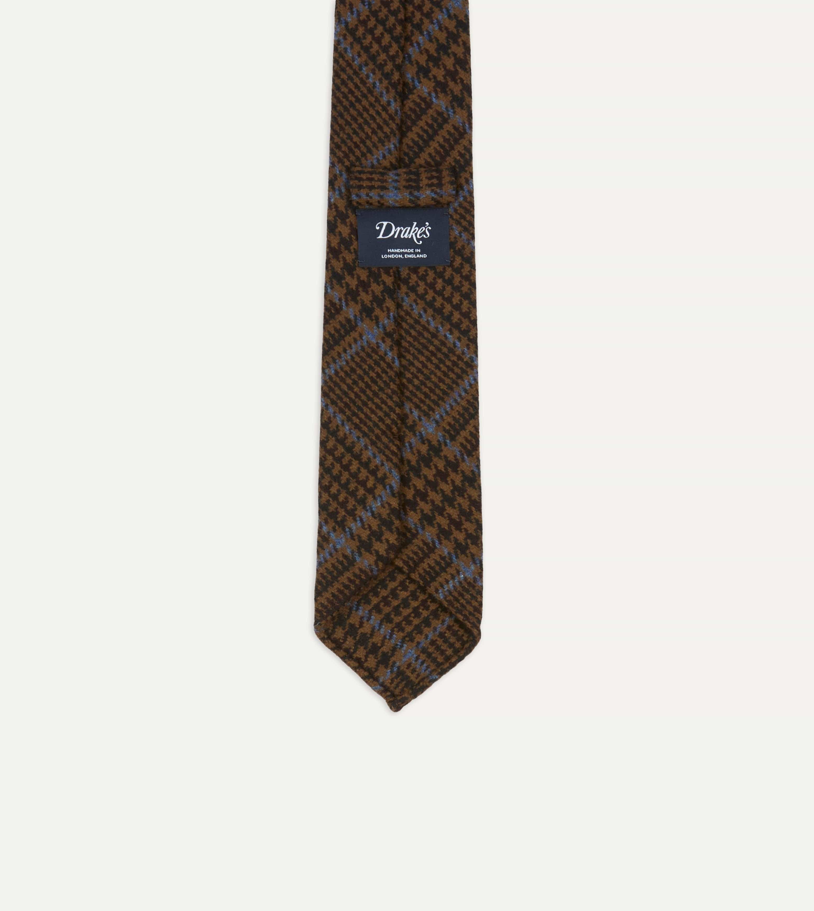 Dark Brown Prince of Wales Check Hand Rolled Wool Tie