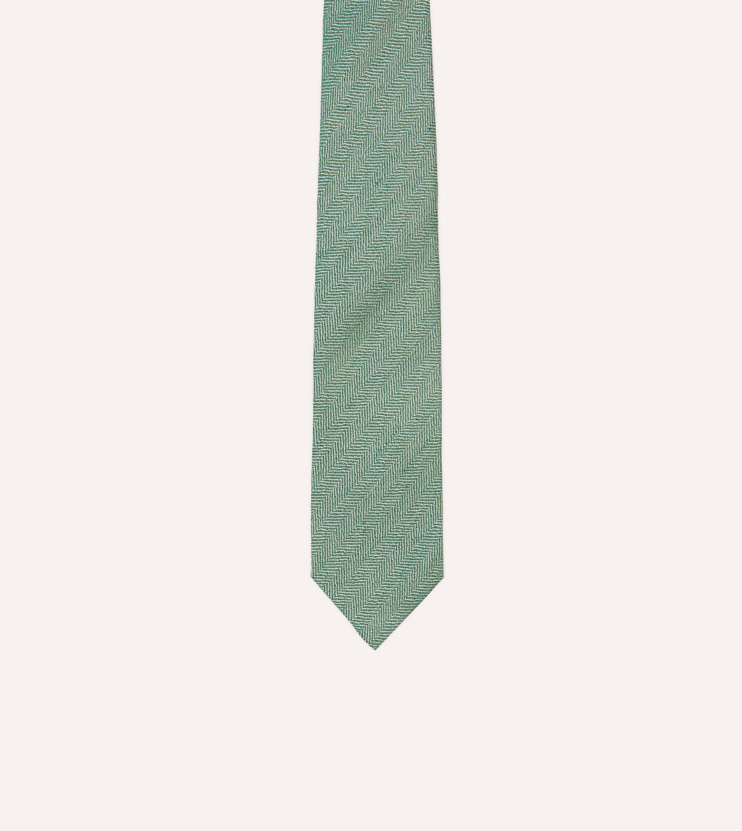 Green and Ecru Herringbone Linen Silk Tipped Tie