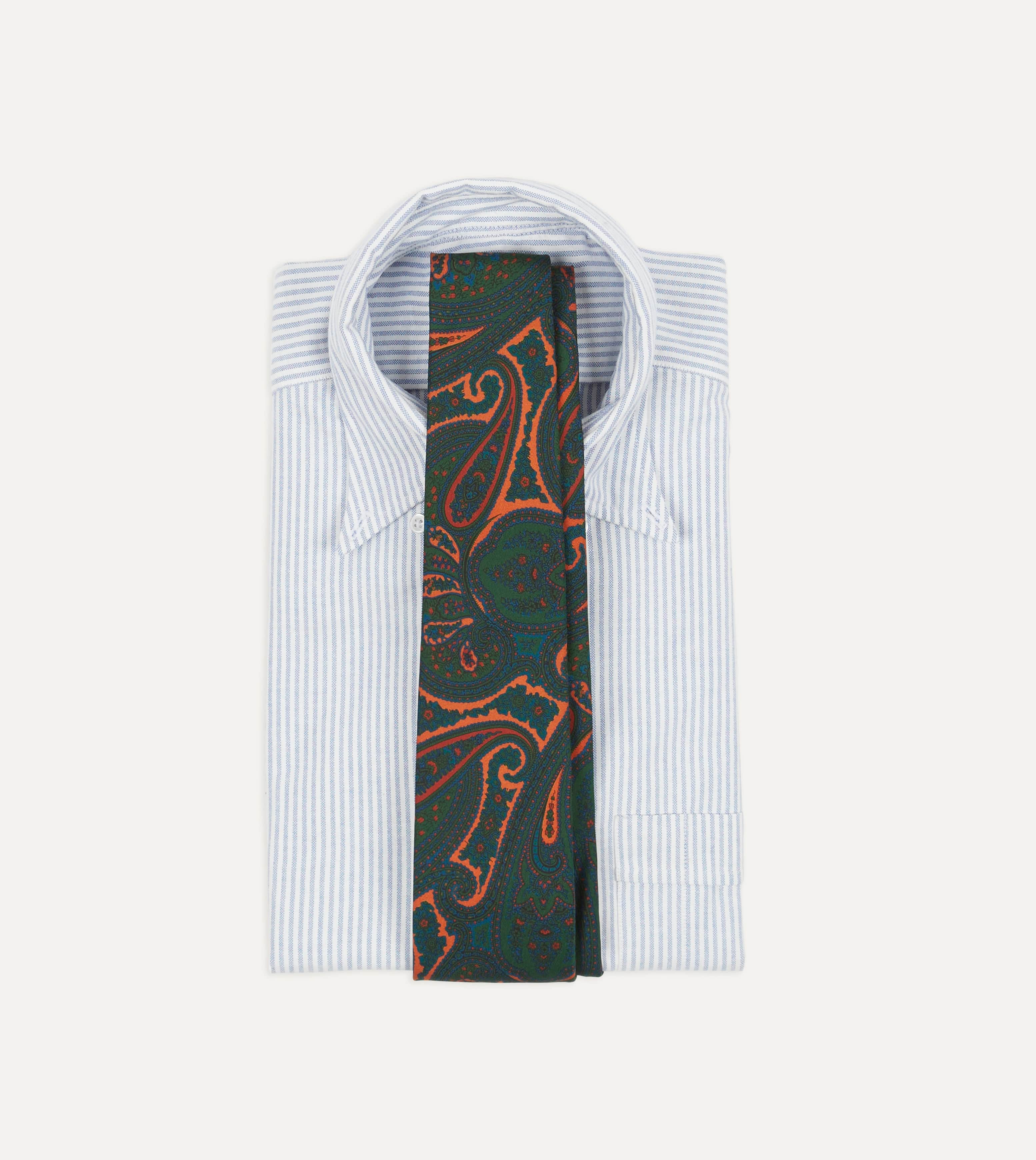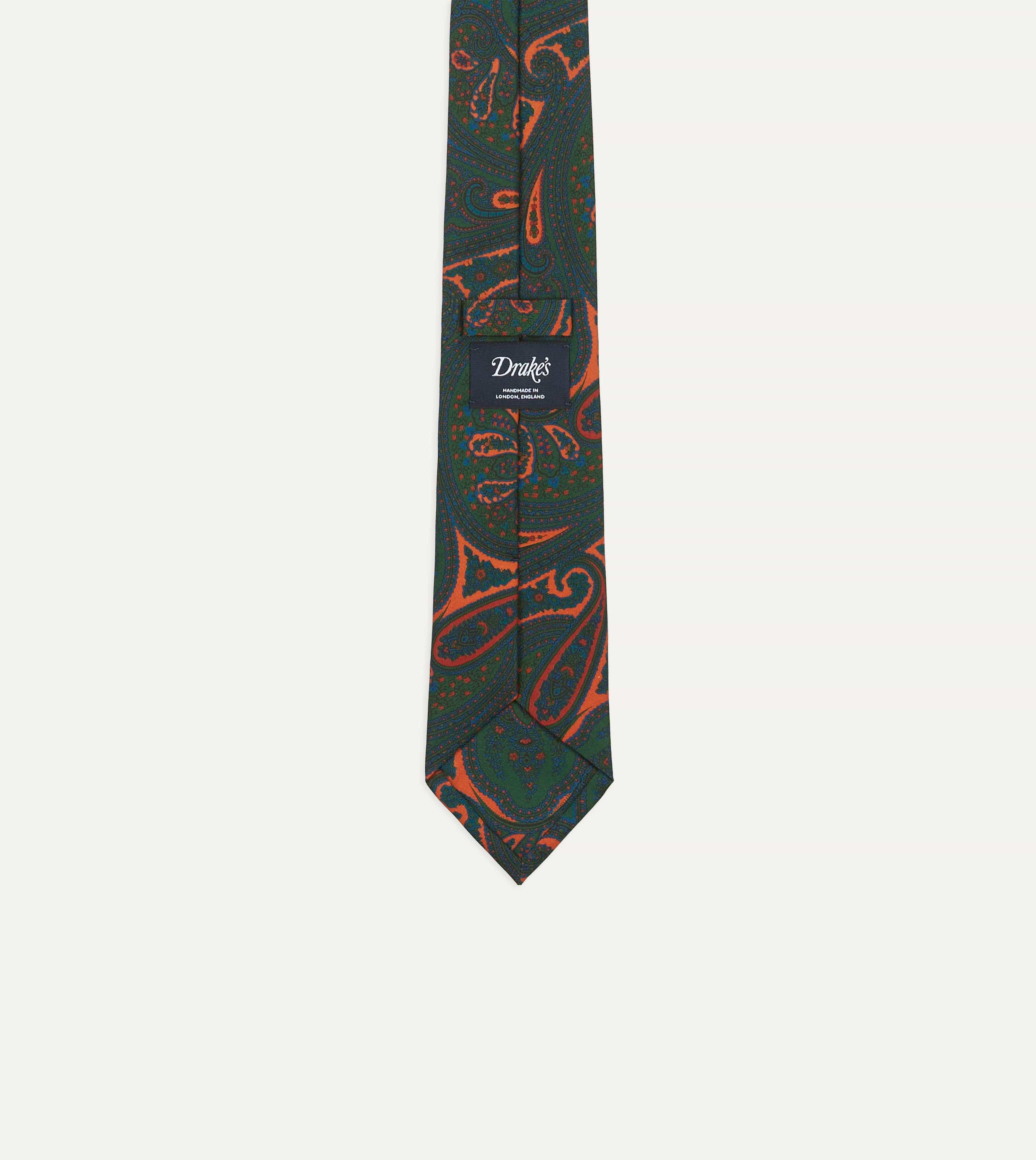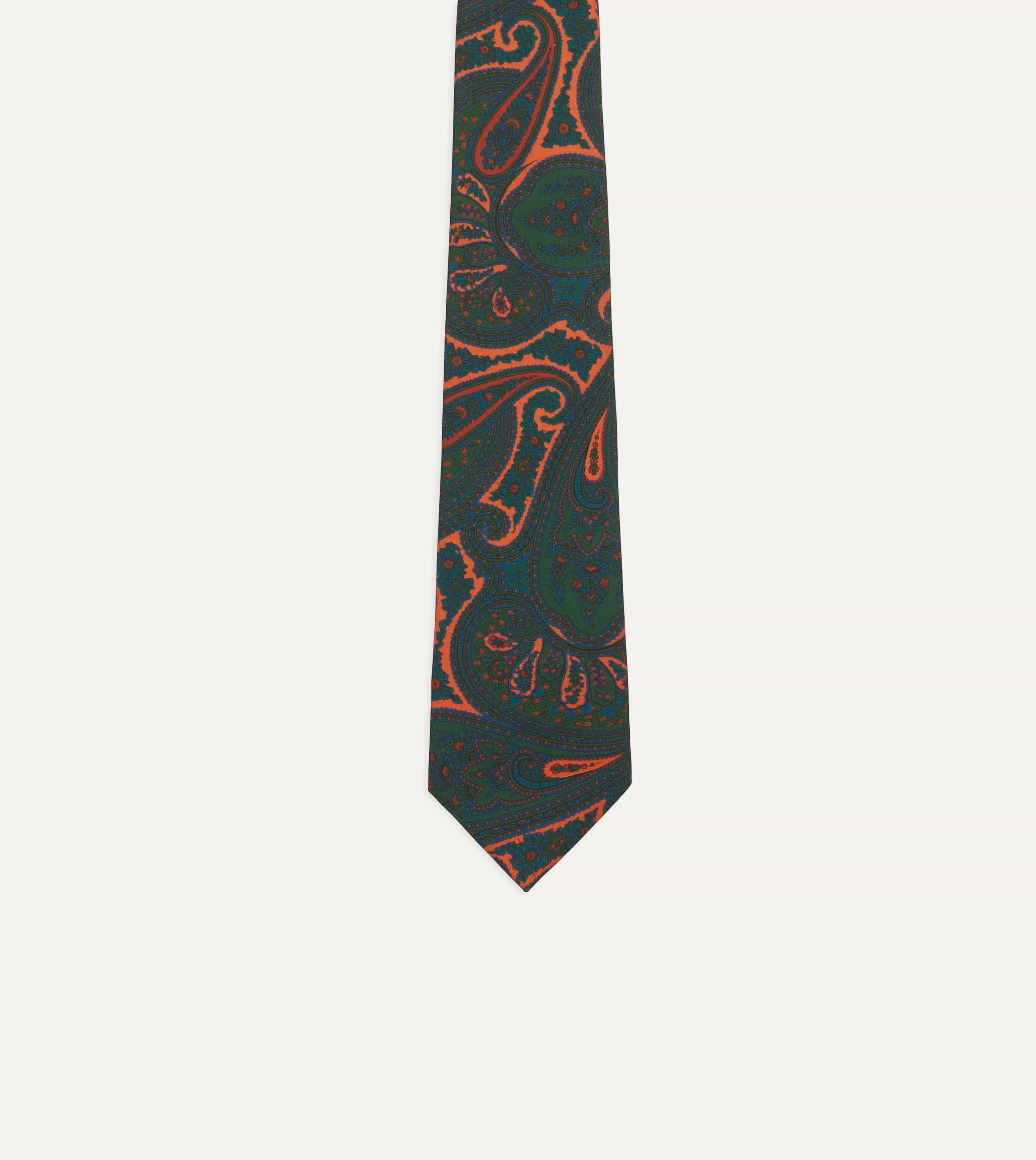 Green and Orange Large Paisley Print Madder Silk Self Tipped Tie