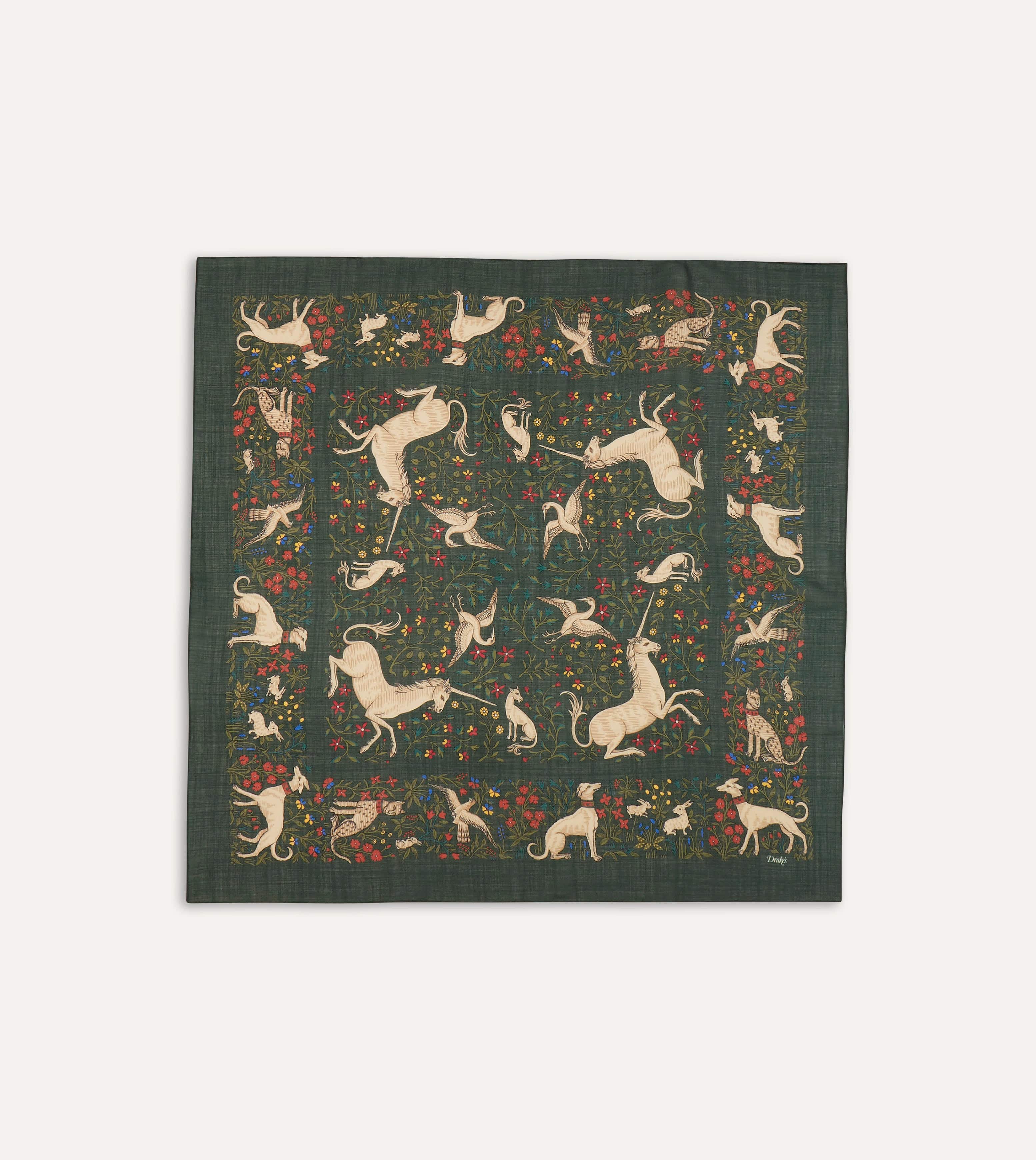 Taken from our extensive design archive, this unicorn motif has been vividly applied to a blend of pure wool and silk for a elegant and comfortable defence from a cold snap.