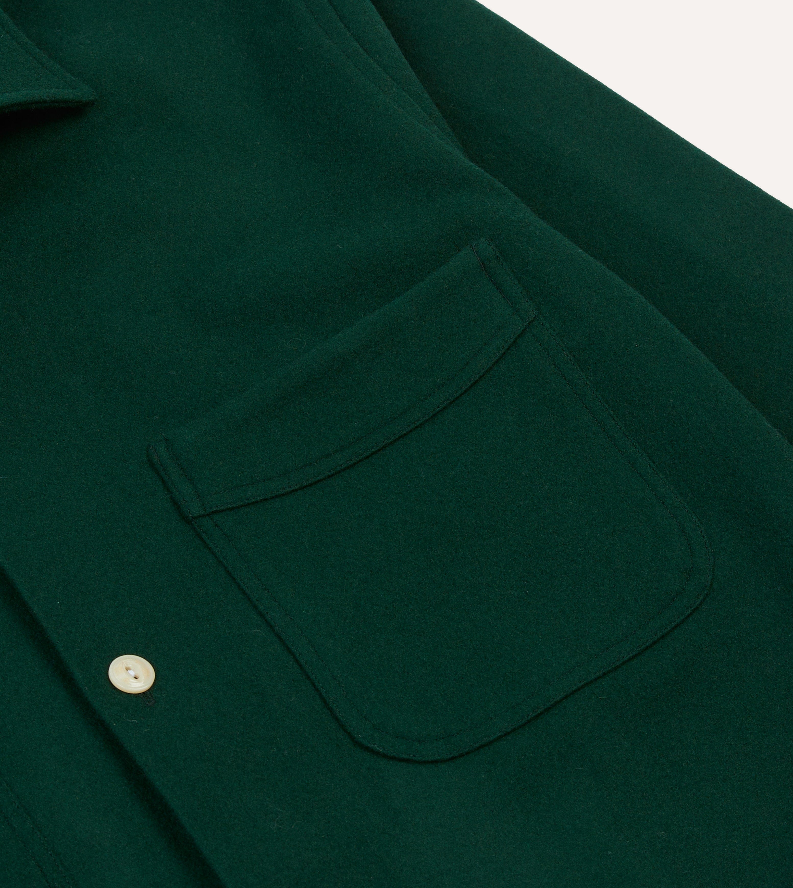 Green Wool Four-Pocket Camp Collar Work Shirt