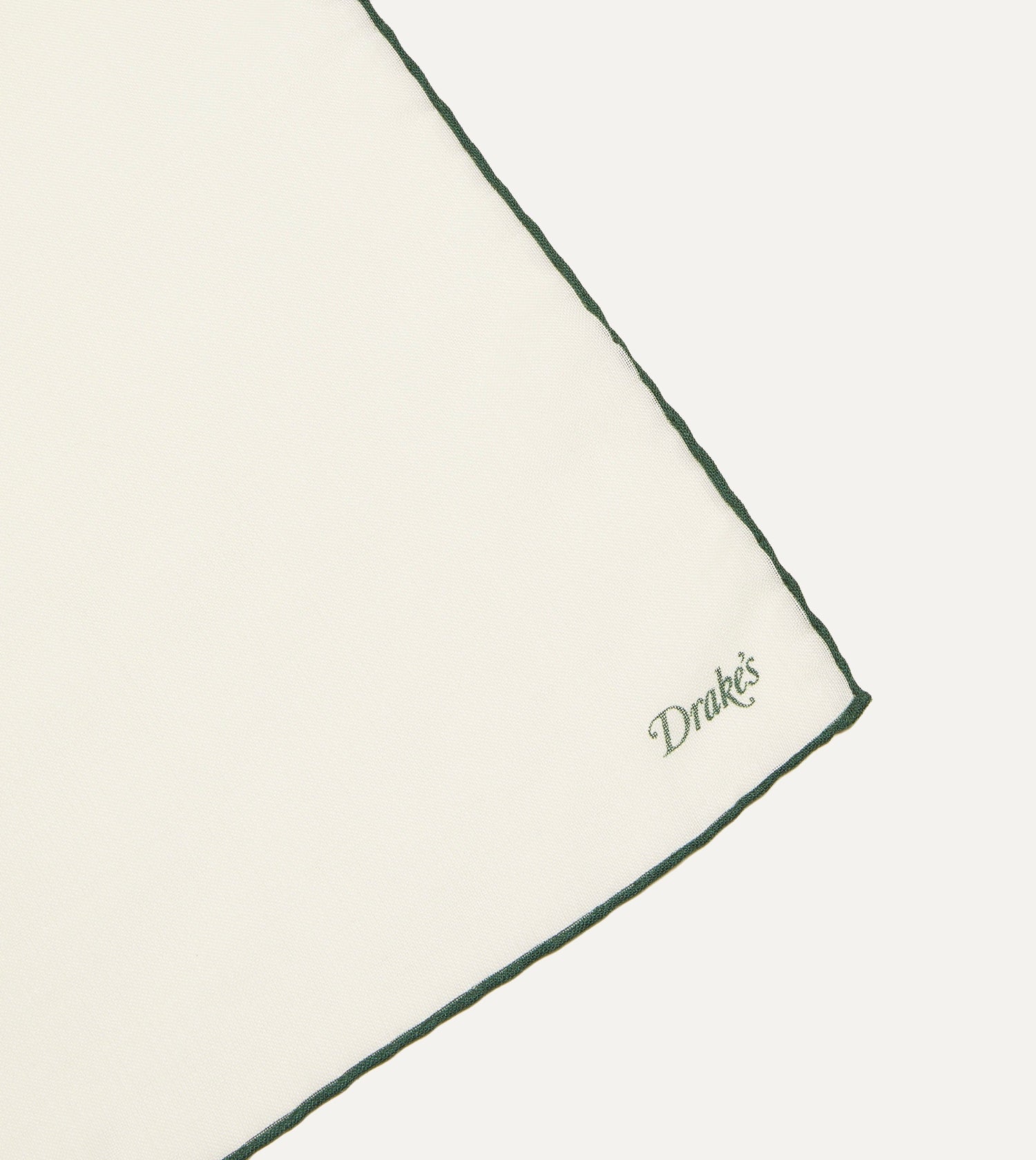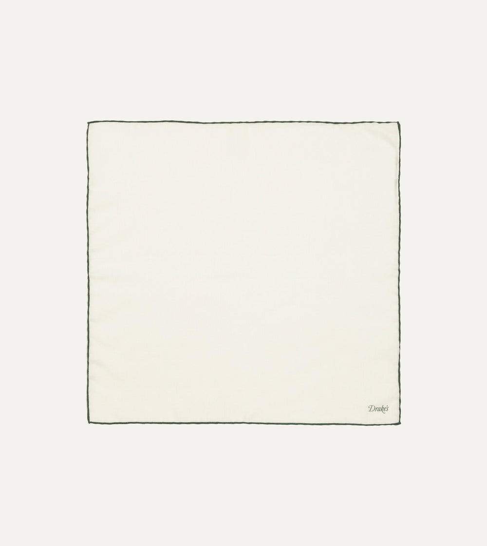 Ivory and Green Shoestring Border Silk Pocket Square