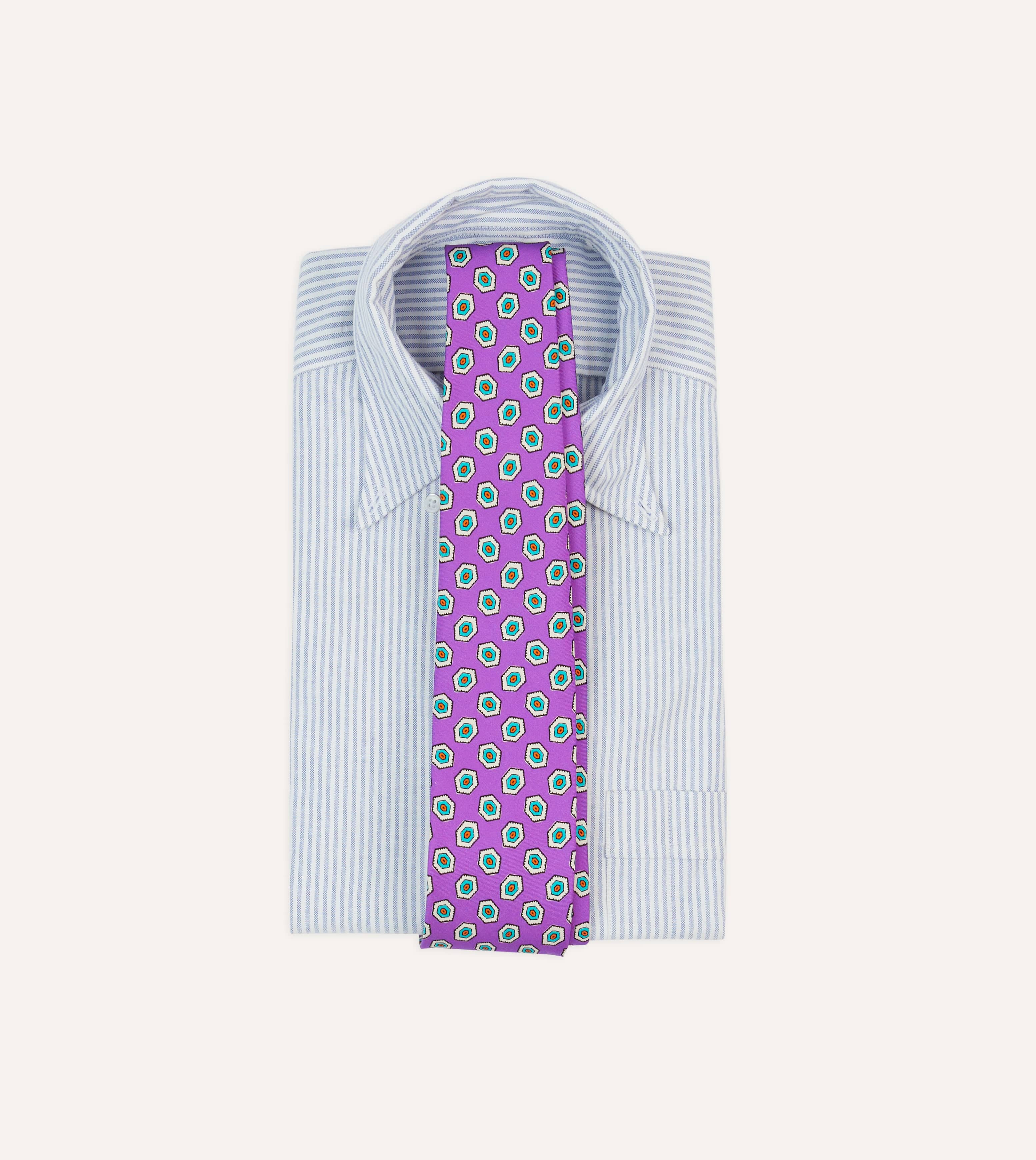 Lilac Hexagon Tile Print Silk Self-Tipped Tie