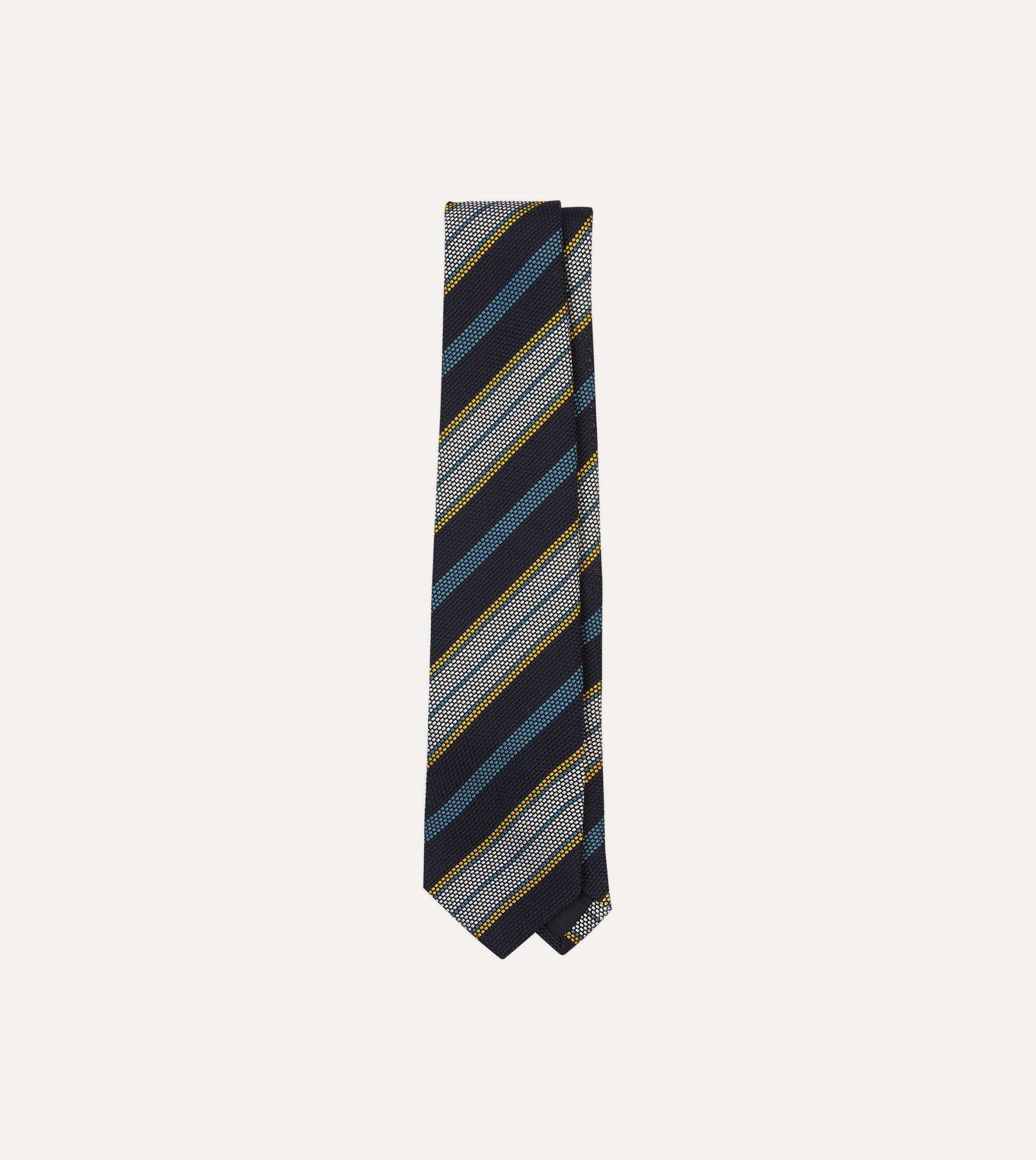 Navy, Blue, Yellow and White Multi Stripe Tipped Silk Grenadine Tie