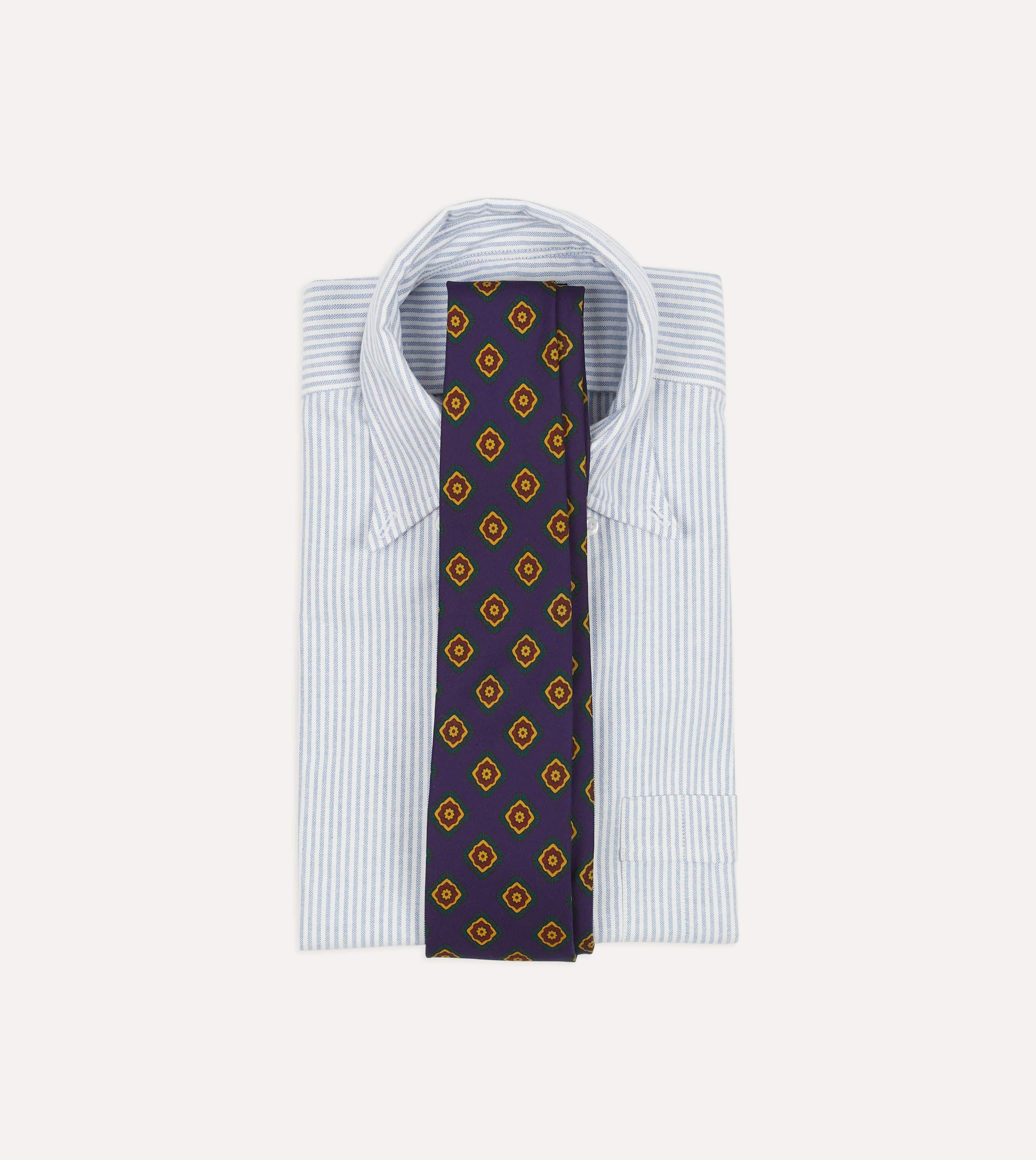 An ornate medallion design simply exudes elegance, particularly when printed on pure silk and hand rolled by our dedicated tiemakers in the heart of east London.