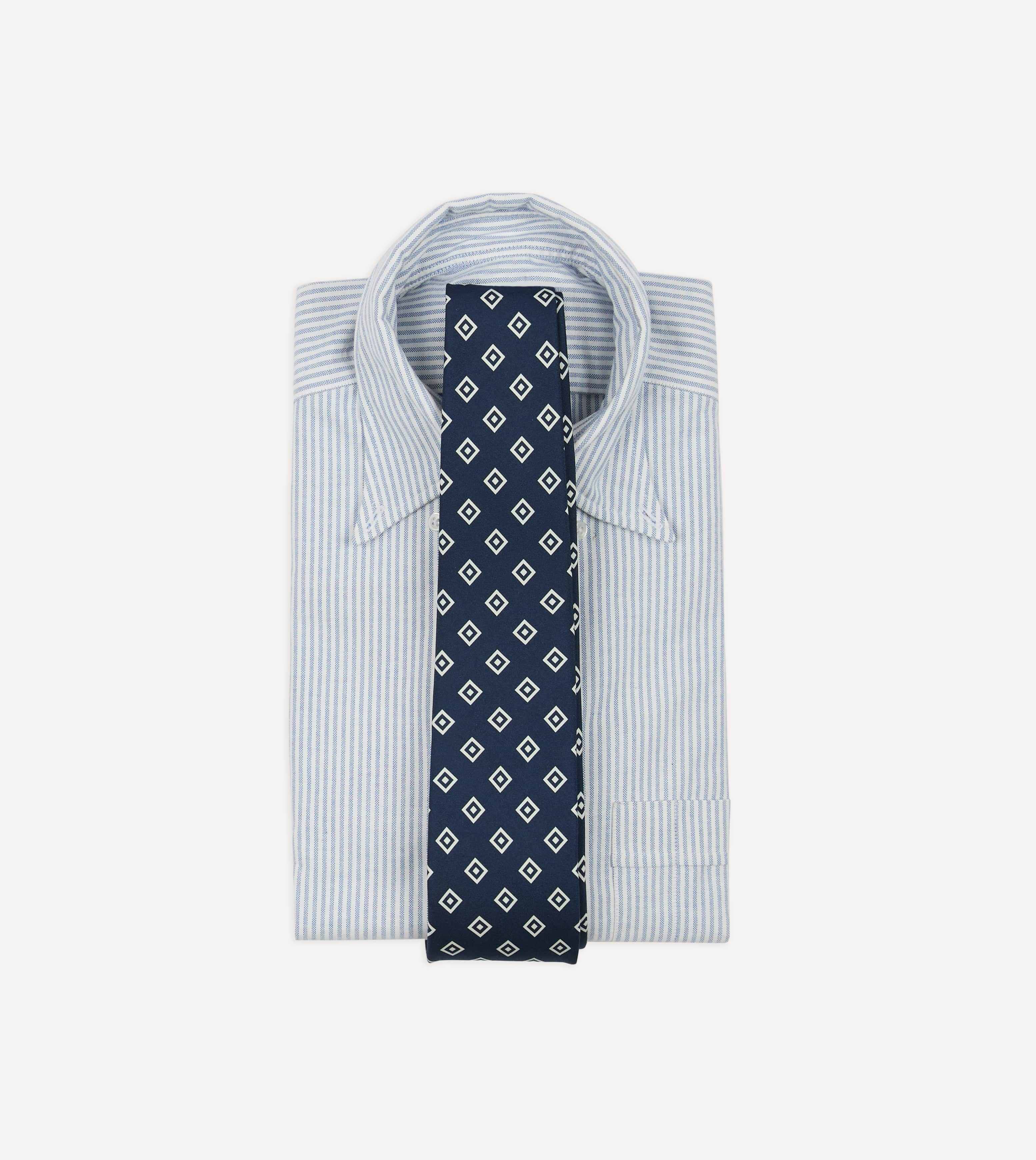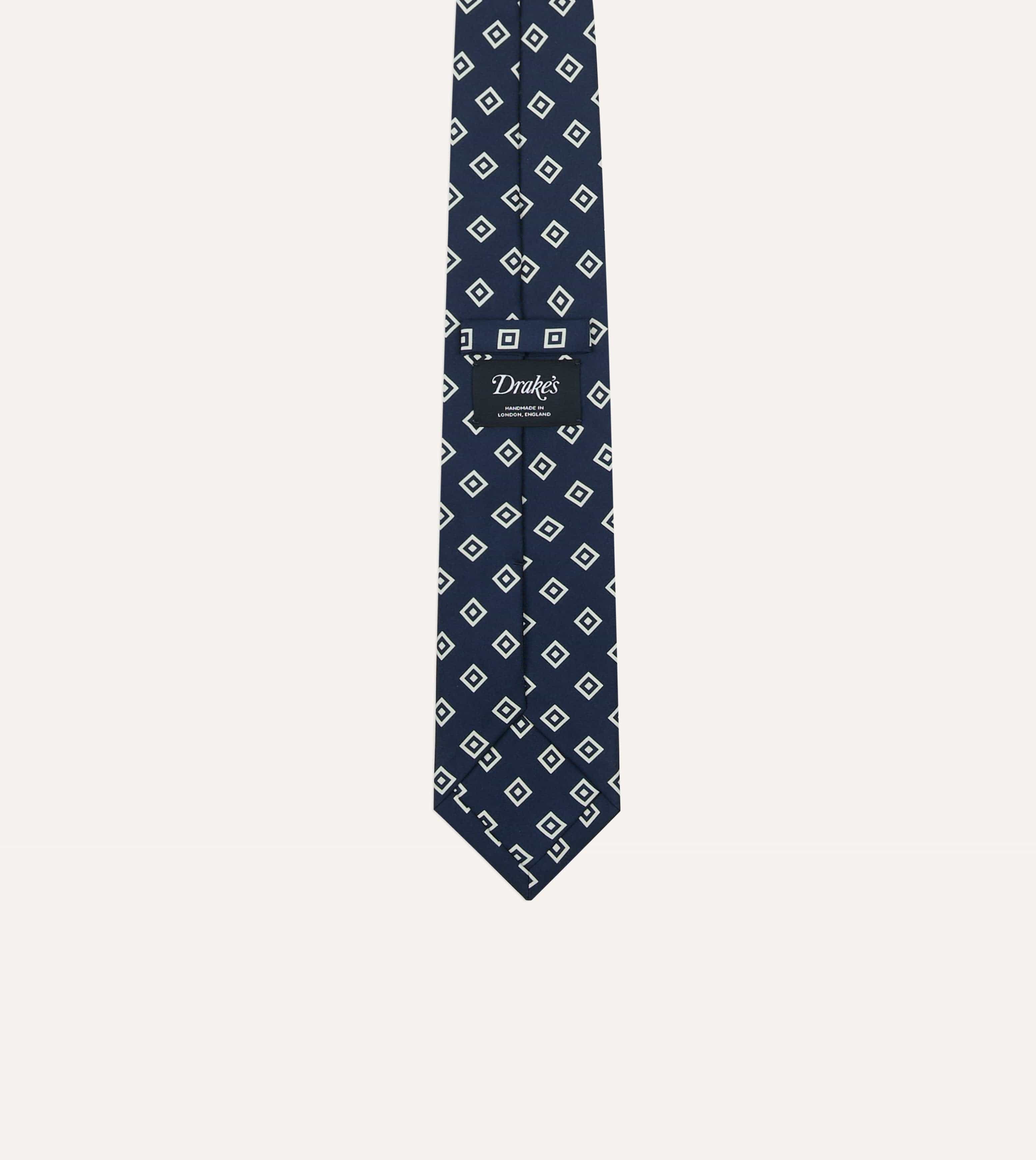 Navy Medallion Crepe de Chine Silk Self-Tipped Tie