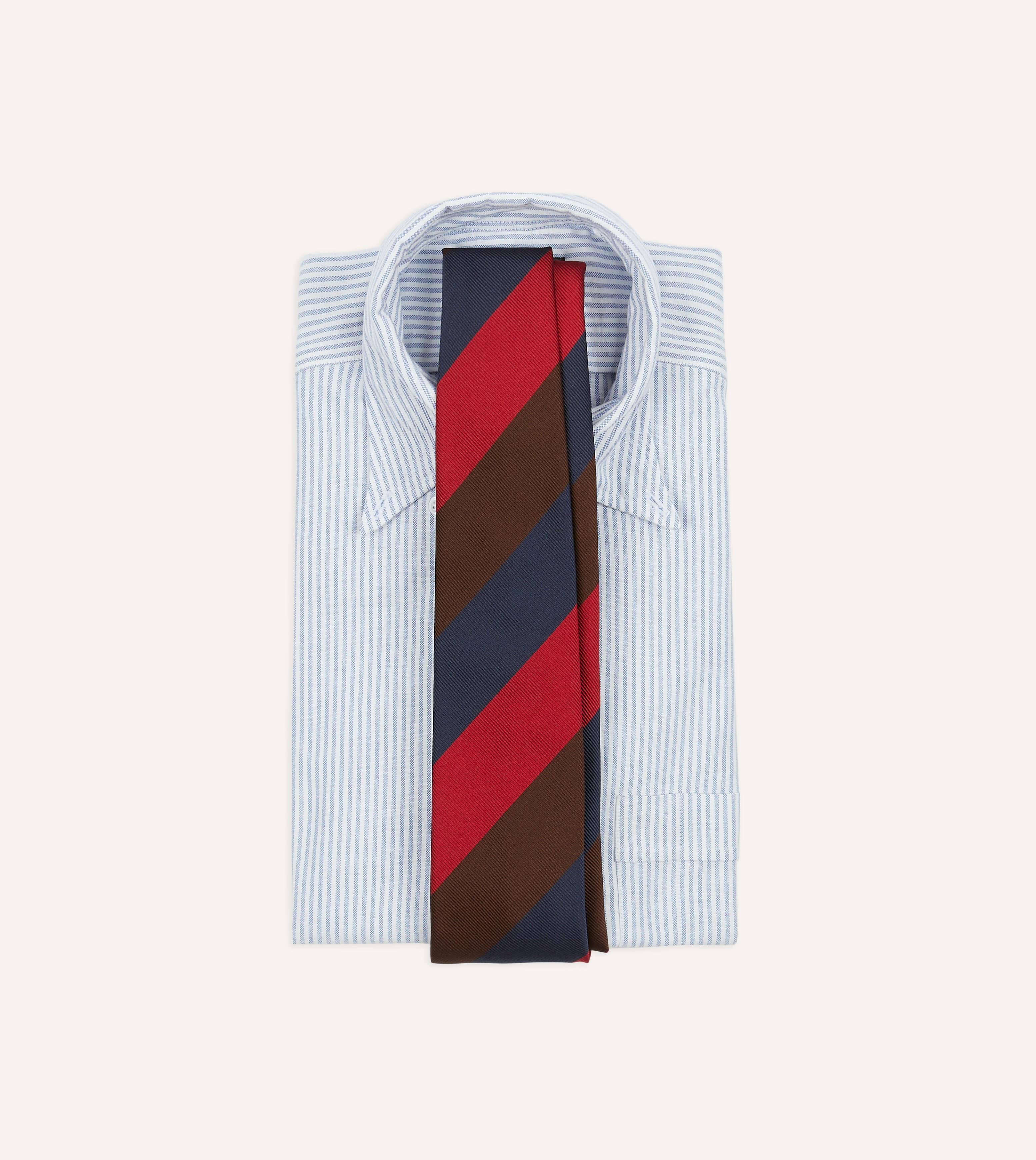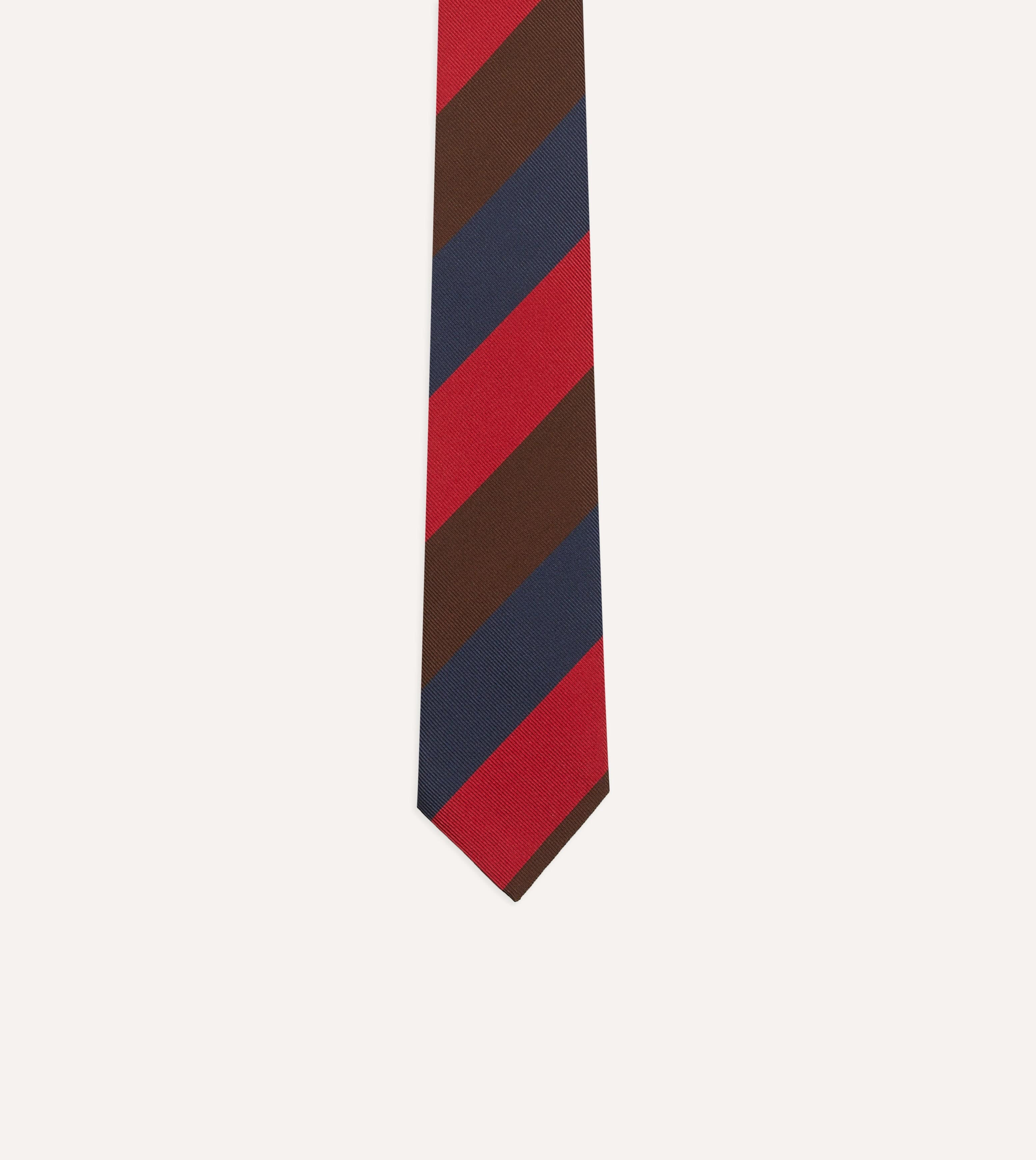 Navy, Red and Brown Triple Stripe Mogador Tipped Tie