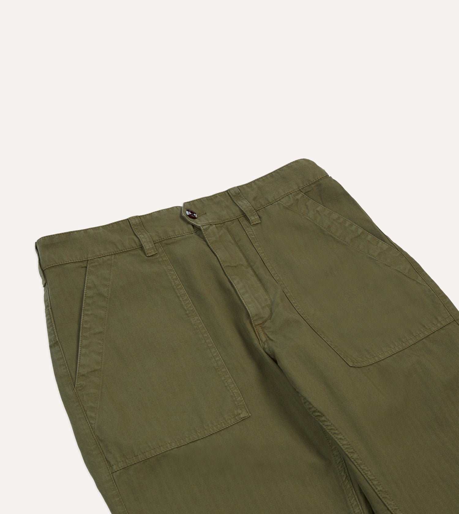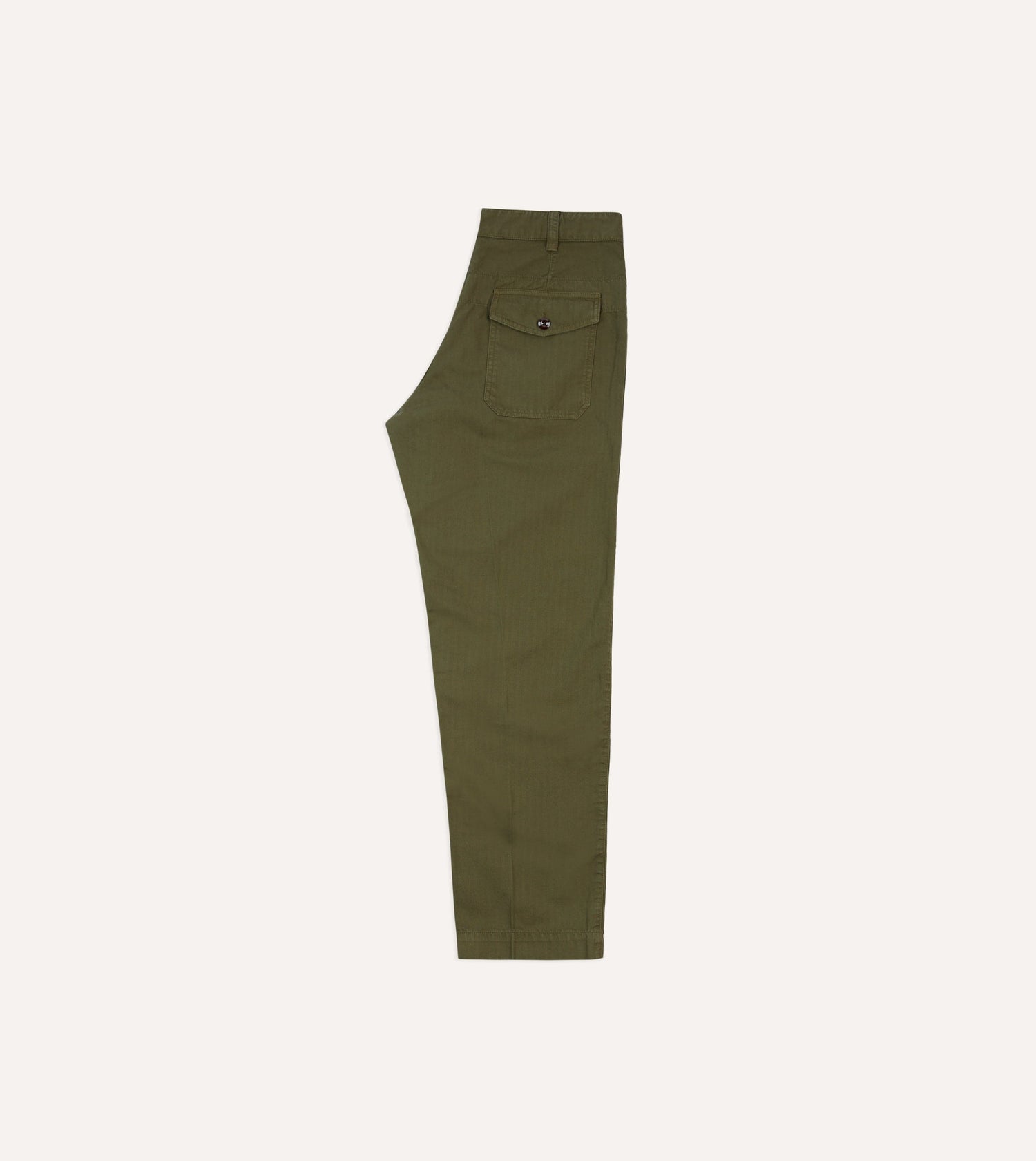 Olive Cotton-Linen Herringbone Fatigue Trouser