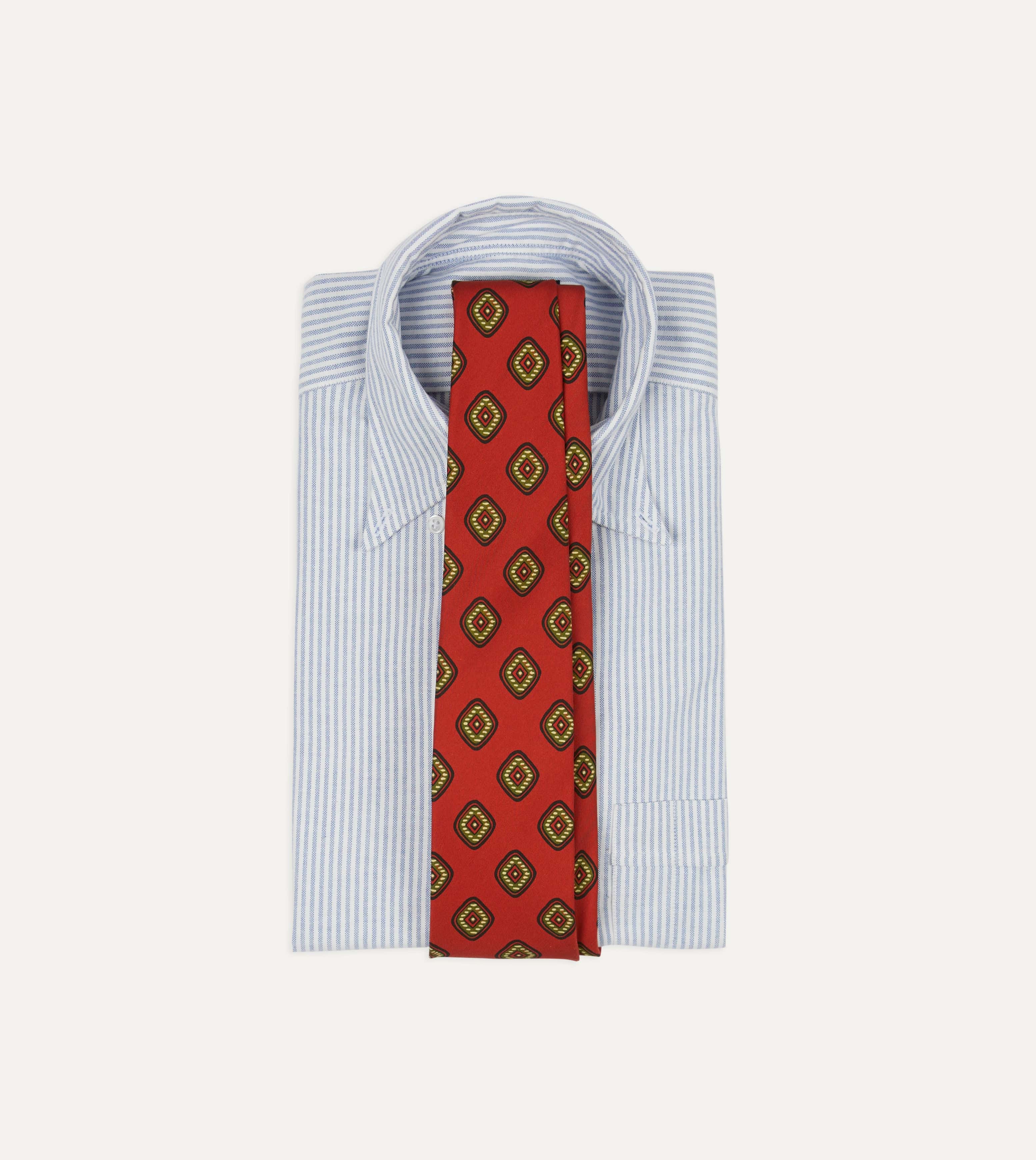 An elegant necktie, handmade in London and featuring an archival tile design, hand-printed in Macclesfield on 36oz Madder silk.