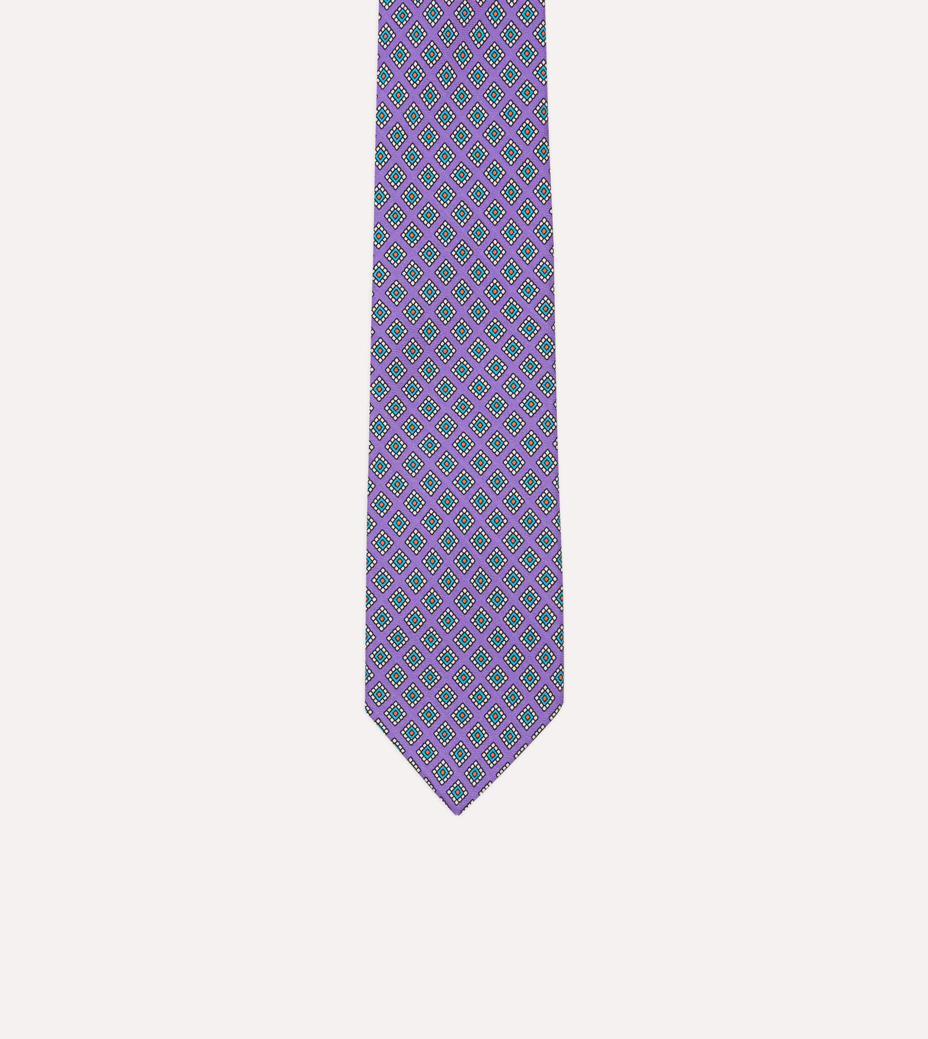 Purple Square Medallion Self-Tipped Silk Tie