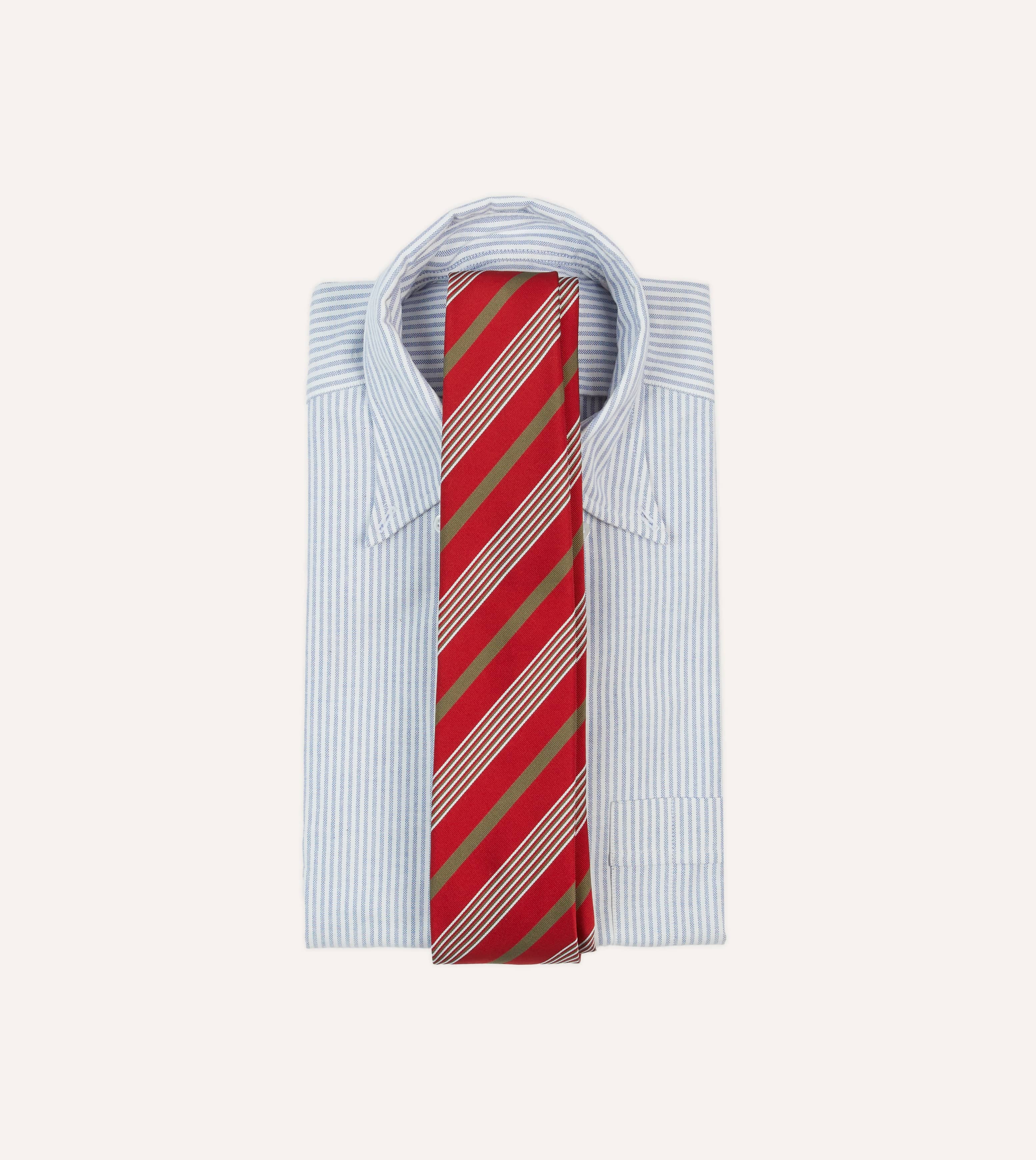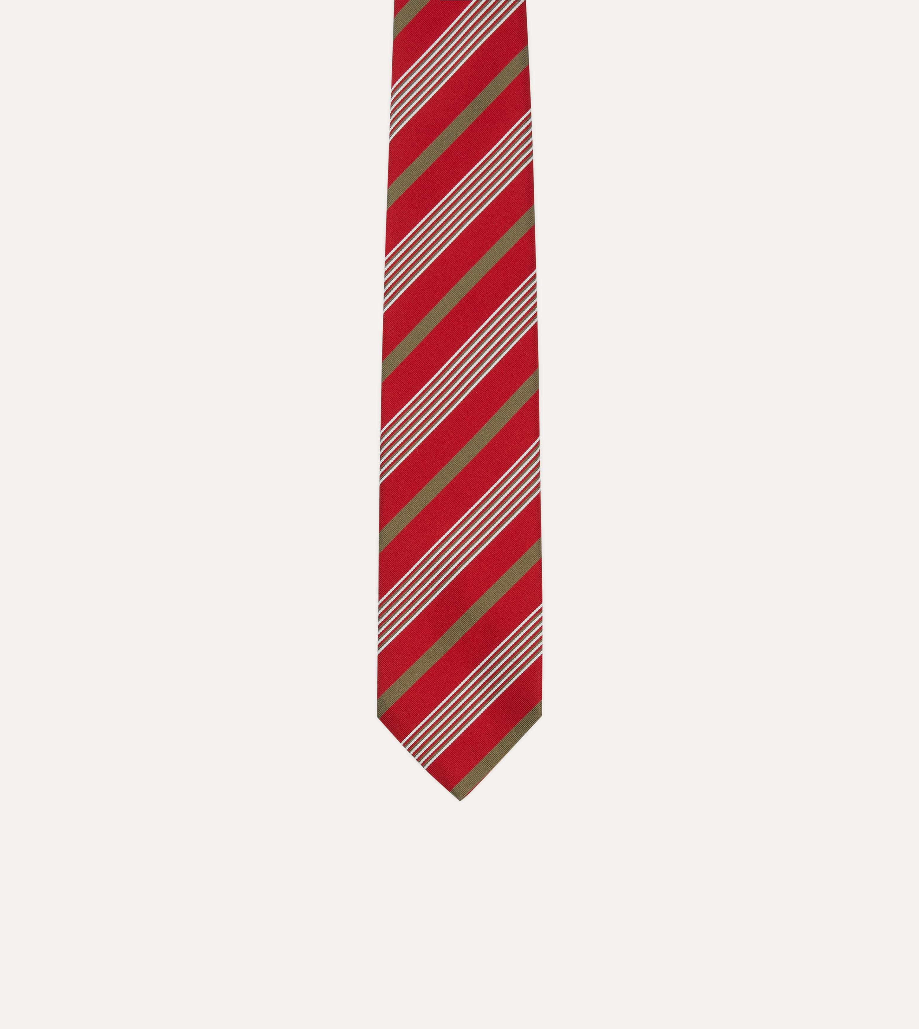Red, Olive and White Multi Stripe Mogador Silk Tipped Tie