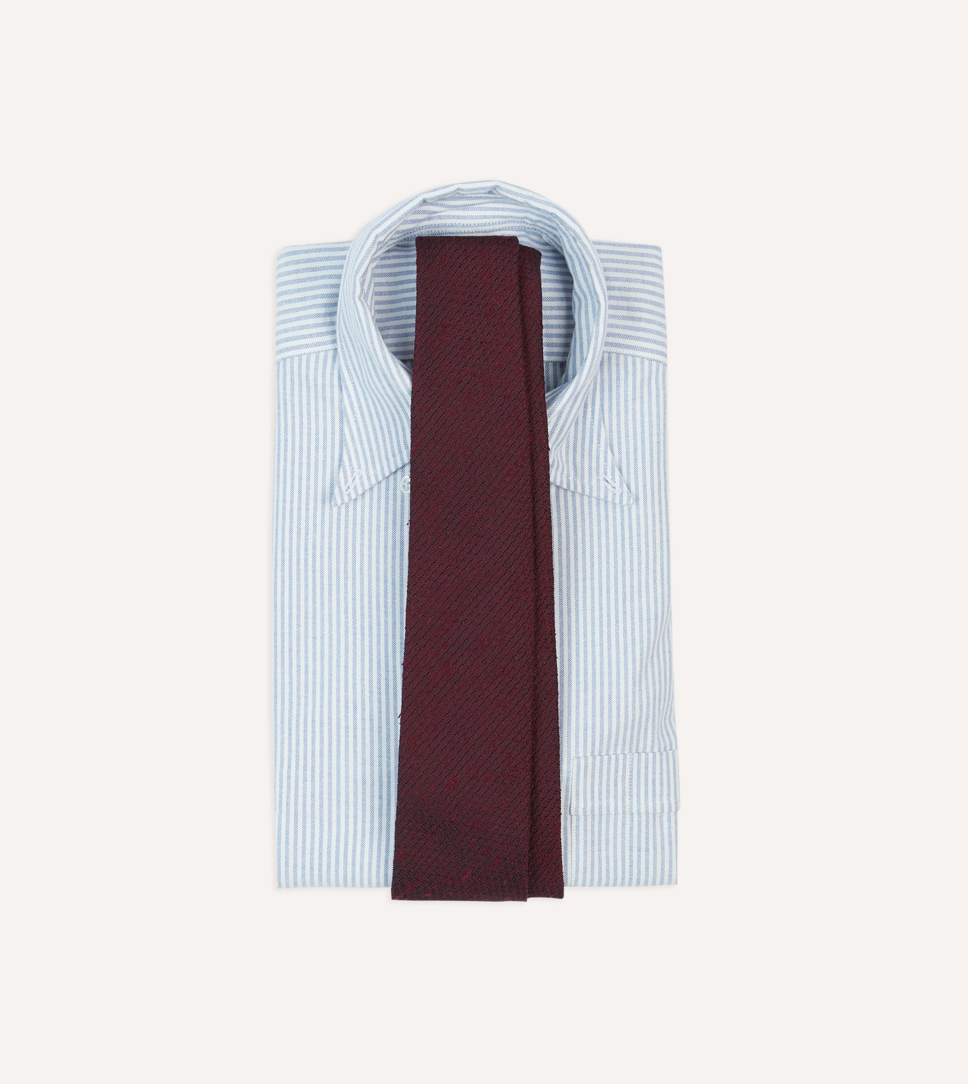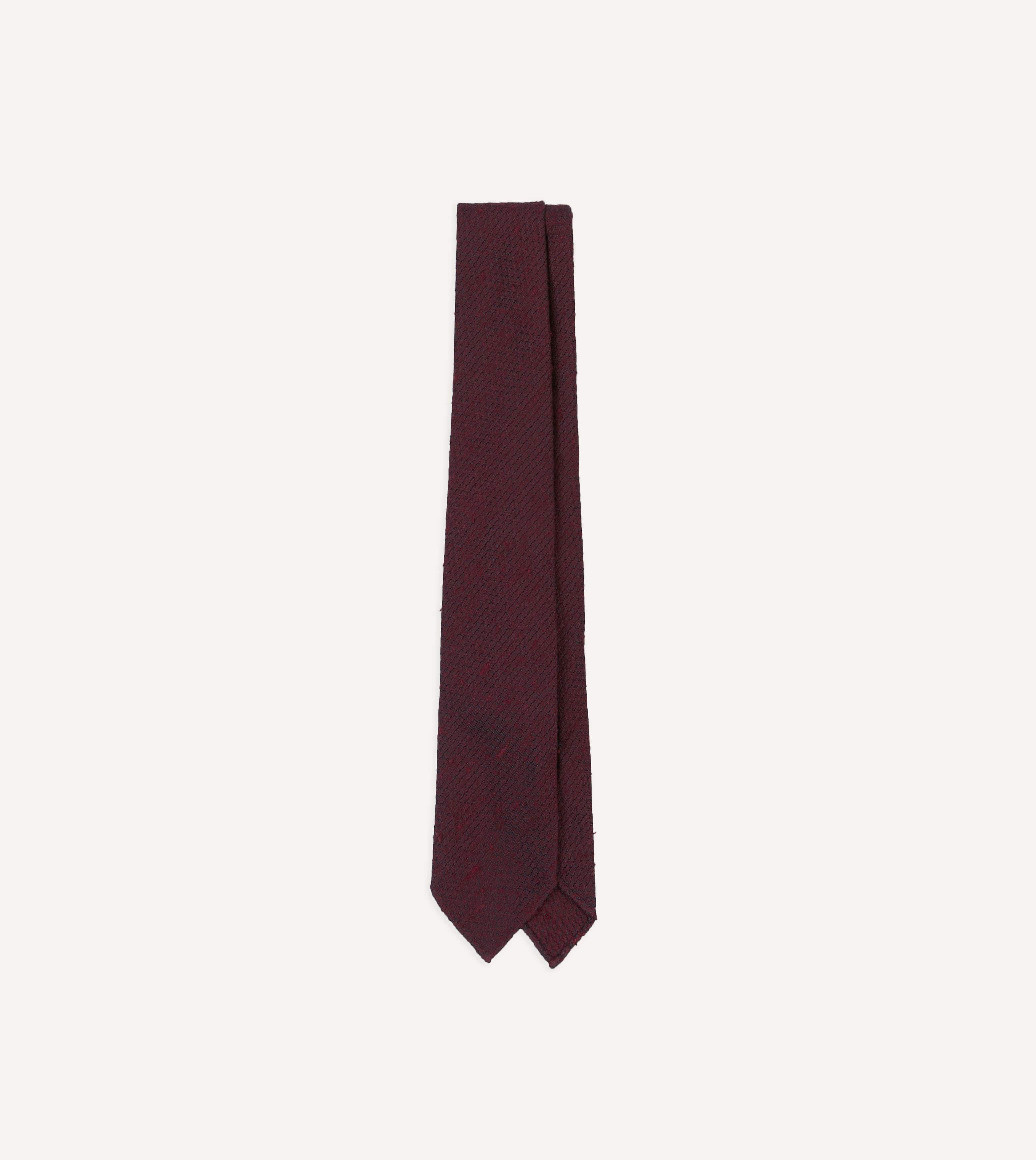 An elegant necktie, handmade in London from Shantung silk, known for its natural slub texture and unique handle.