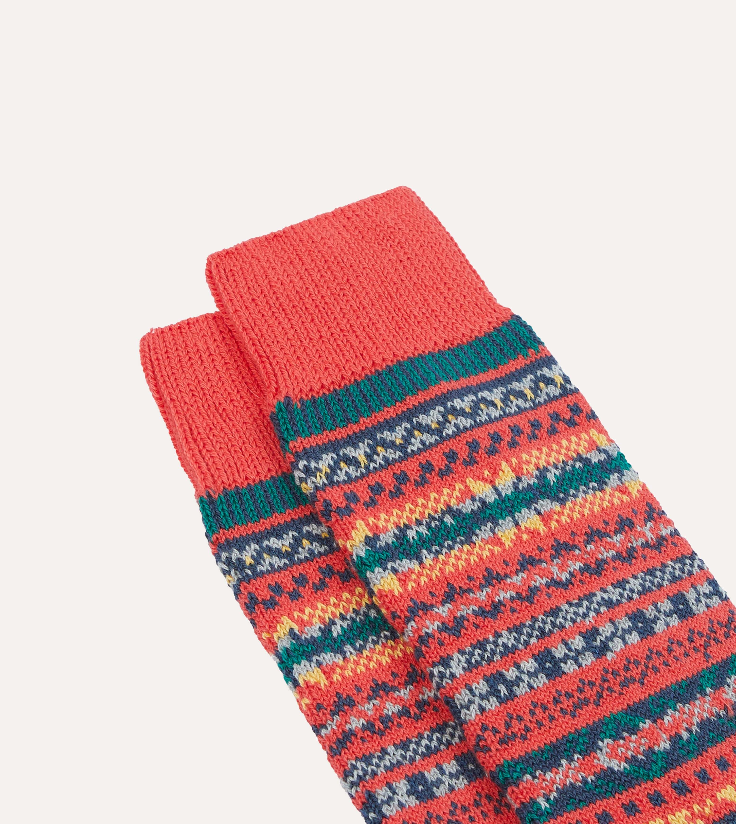 Handcrafted in Nara Prefecture, Japan using traditional manufacturing techniques, RoToTo’s socks are constructed with comfort at the forefront, and are presented here in a traditional Fair Isle pattern.
