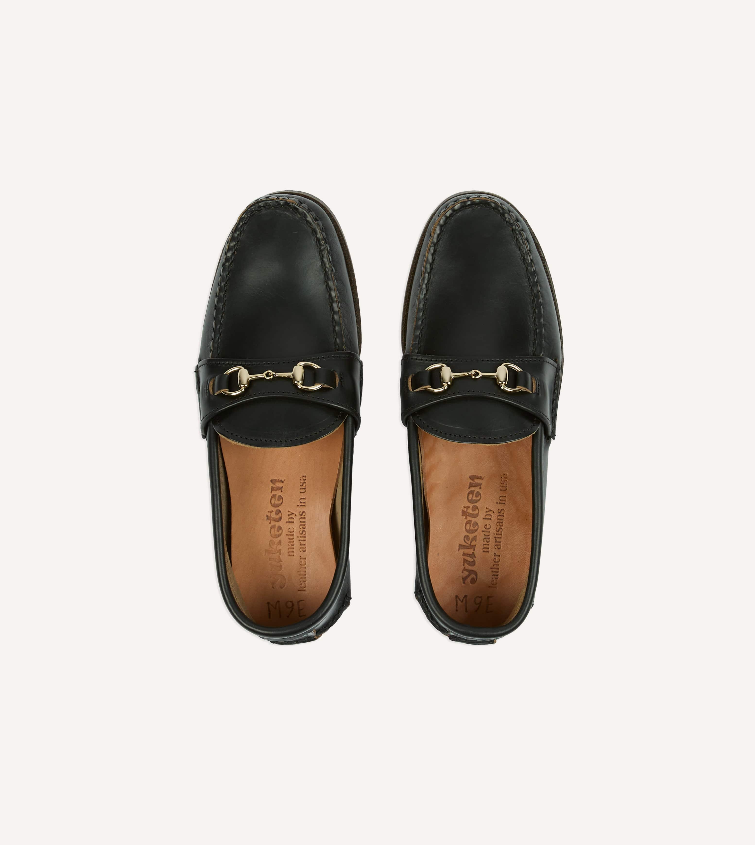 Yuketen Black Leather Bit Loafer with Camp Sole