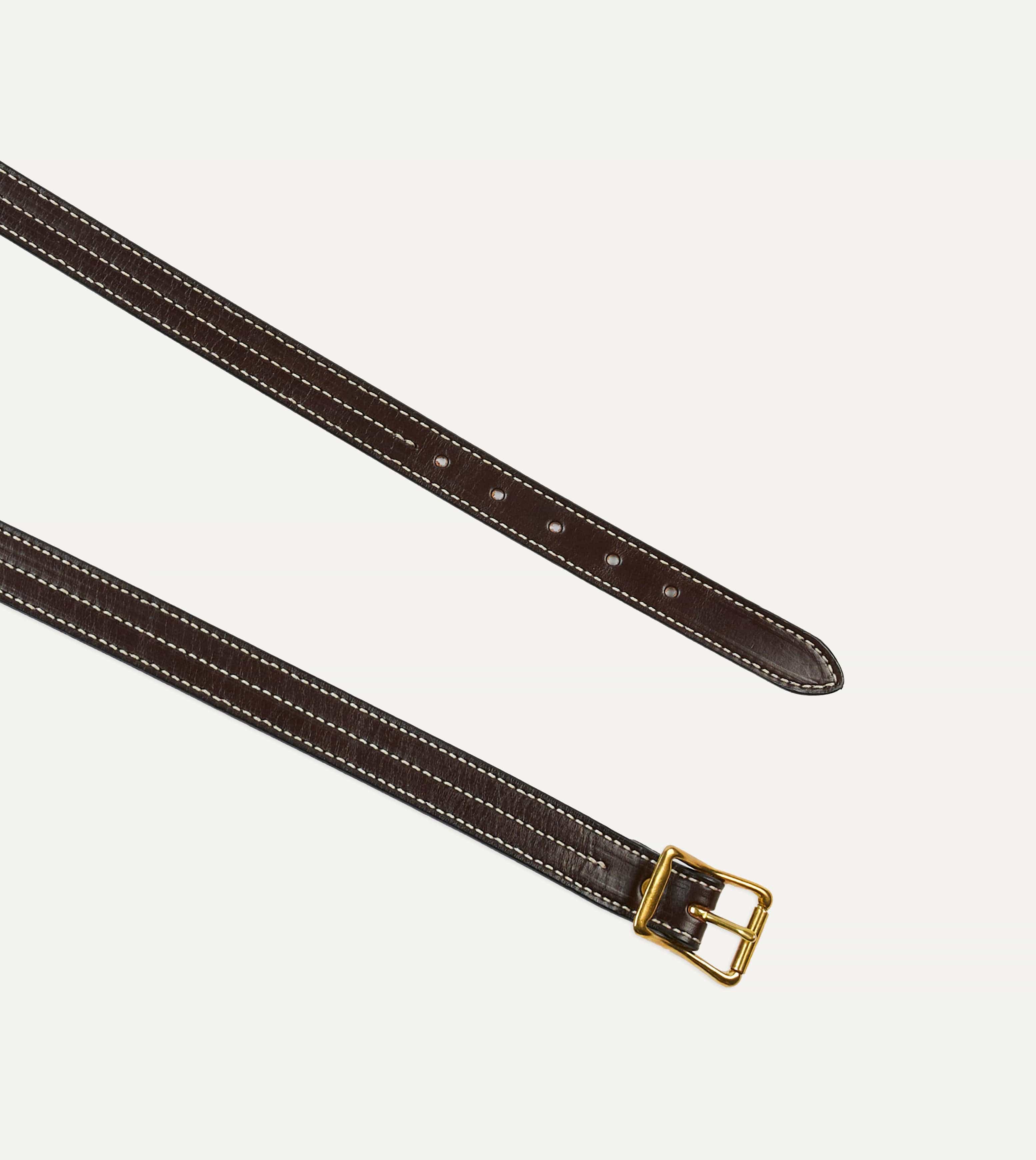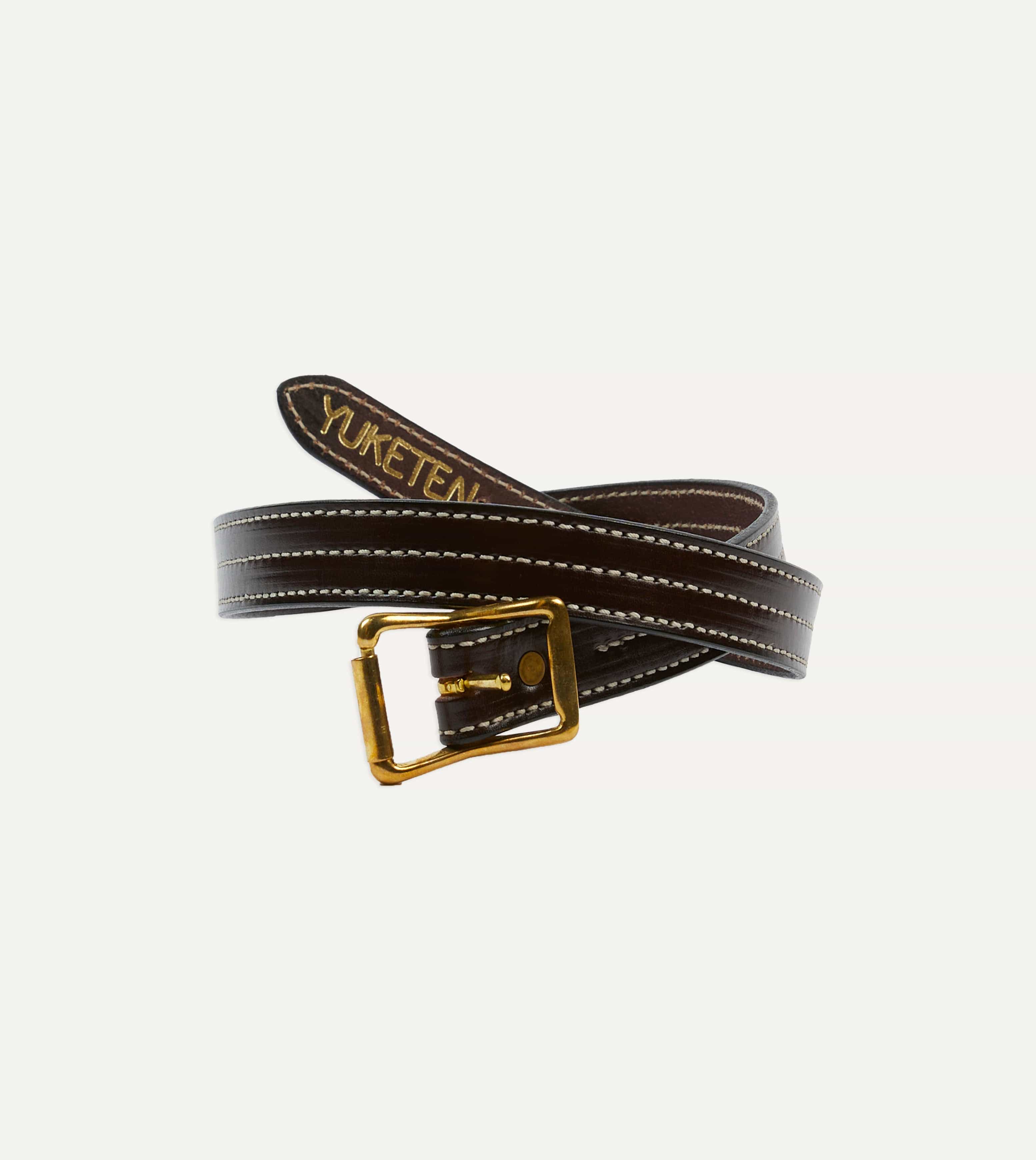Yuketen Dark Brown Triple Stitched Leather Belt