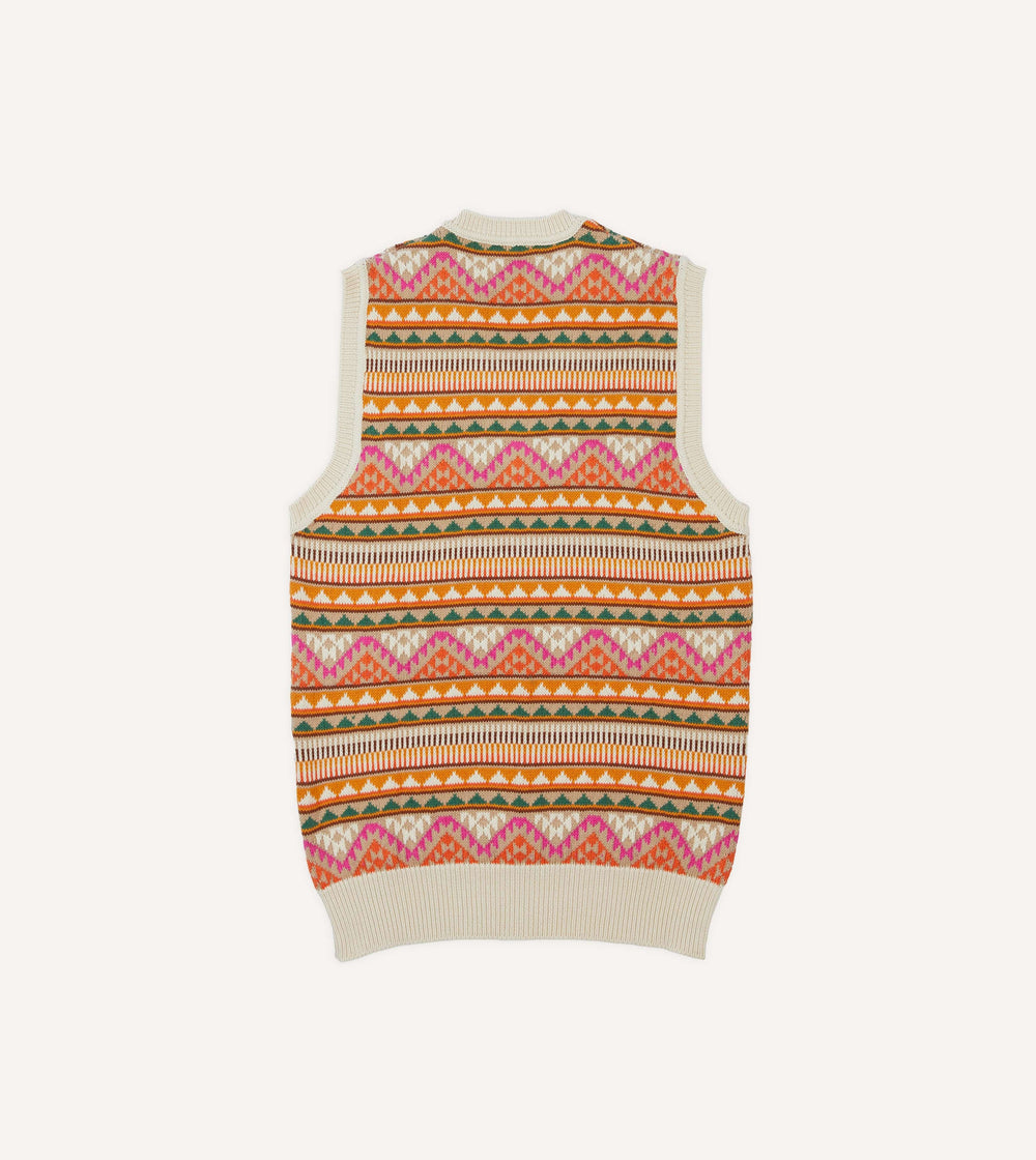 Beige Cotton Cashmere Kilim Knit Vest