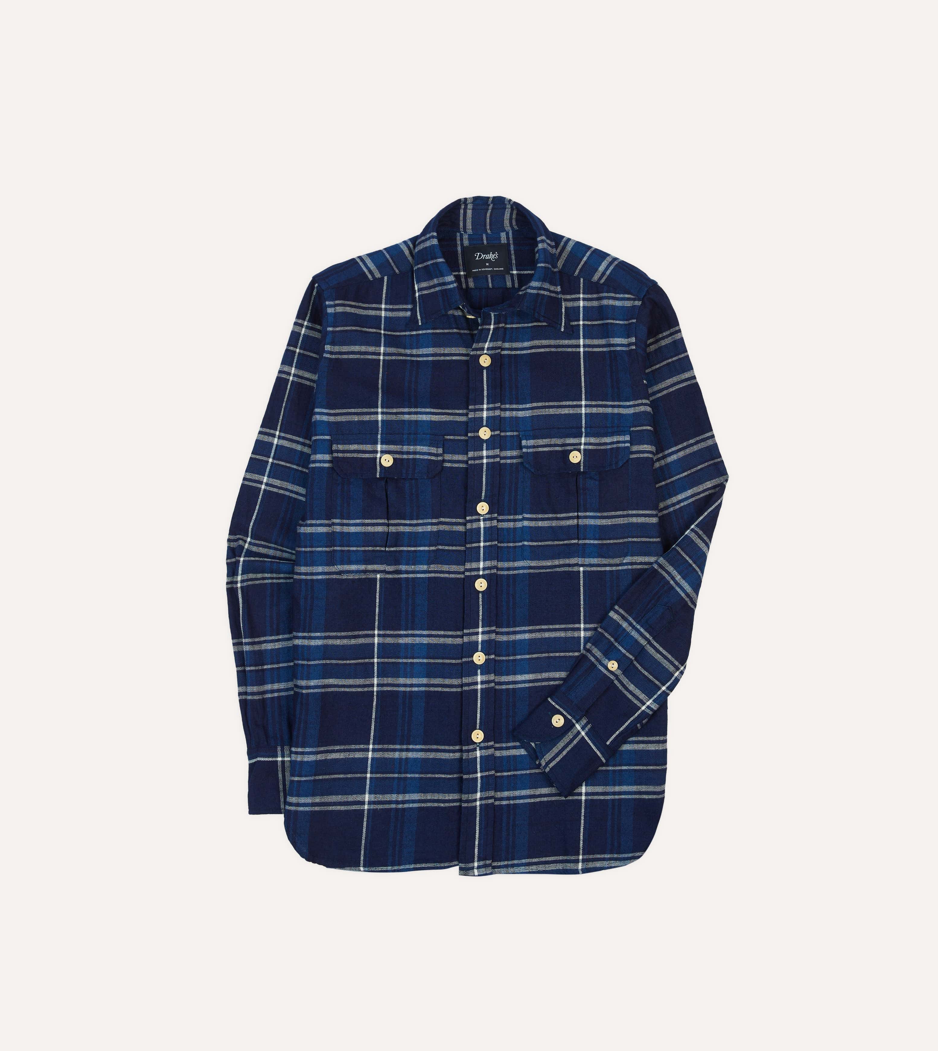 Featuring two button-flap pockets for unburdened trousers and a long point collar for a decidedly more sartorial leaning, things are capped off with the same single-needle construction and corozo buttons de rigueur to Drake's shirting.