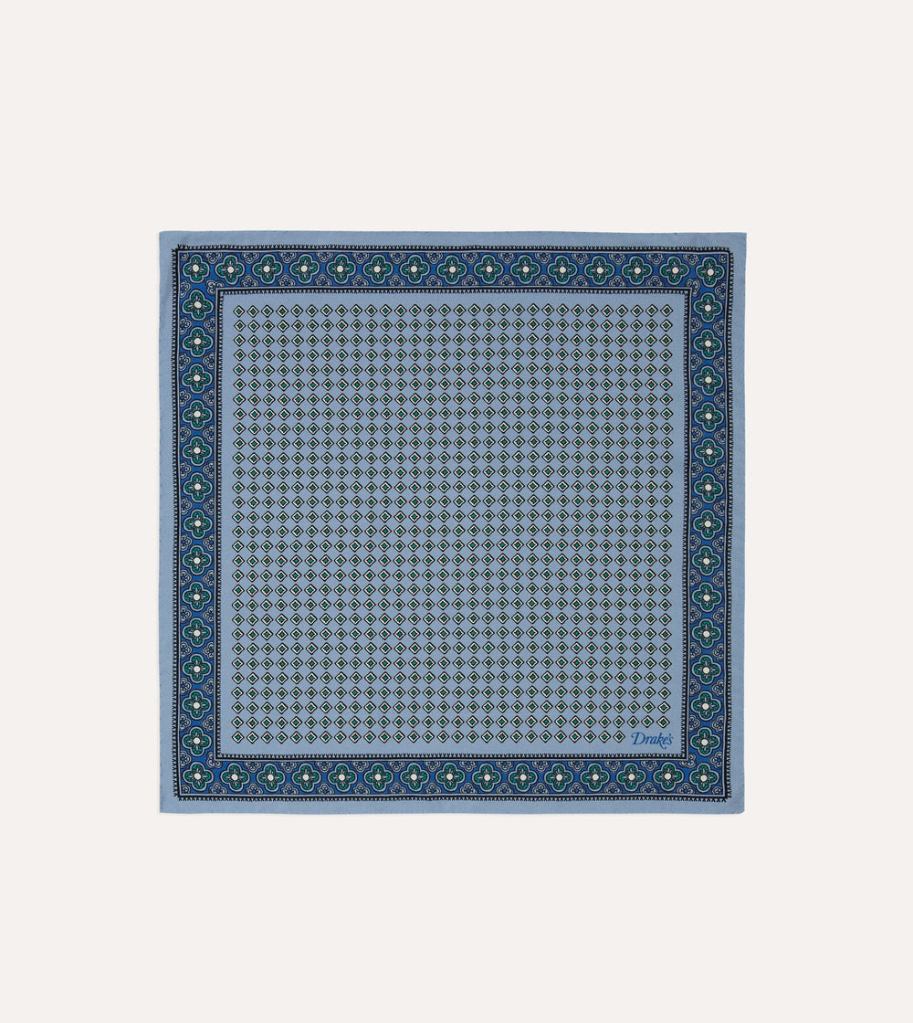 Blue Vintage Tile Print Silk Pocket Square