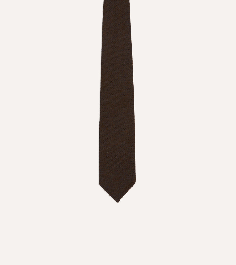 An elegant necktie, handmade in London from Shantung silk, known for its natural slub texture and unique handle.