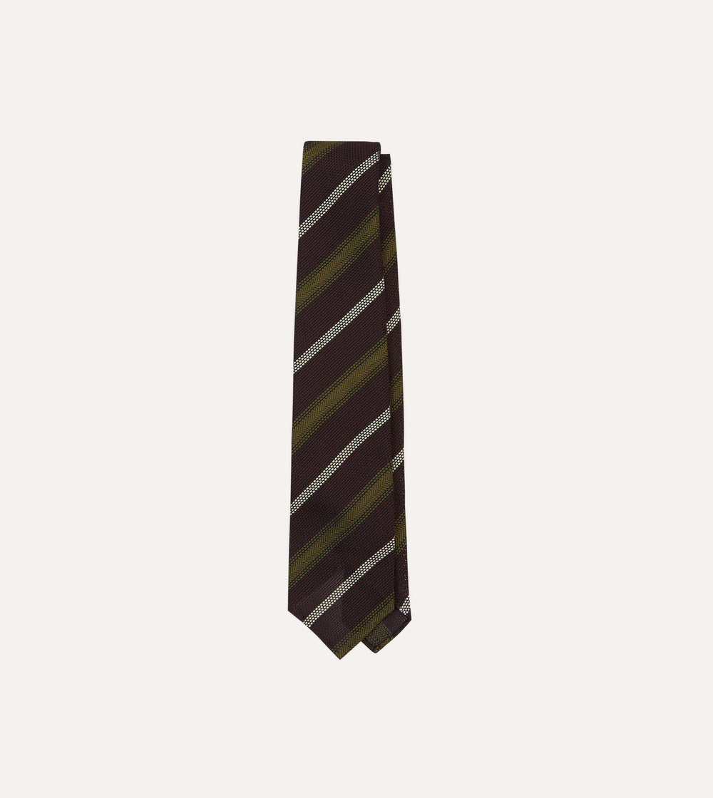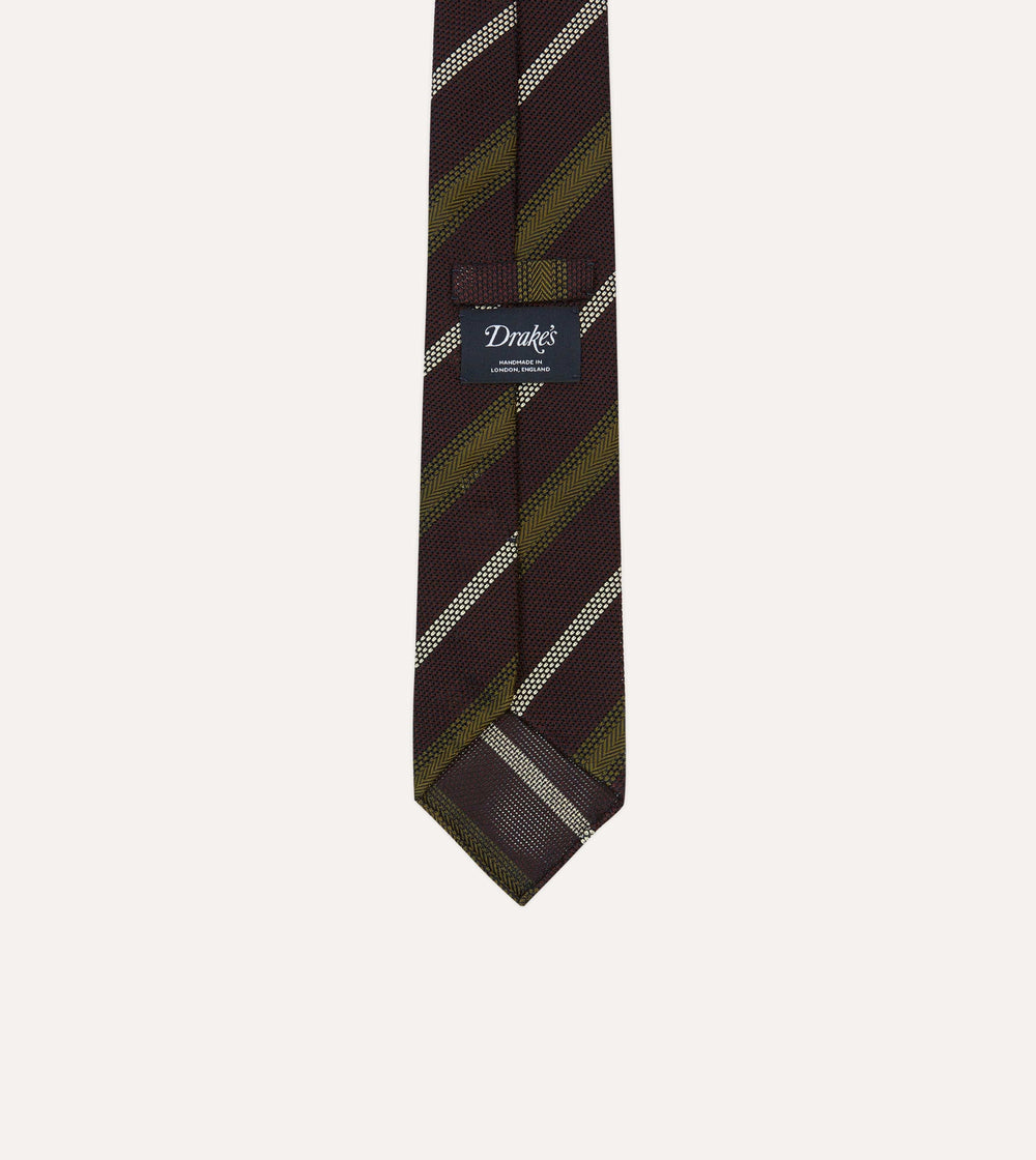 Burgundy, Olive and Ecru Stripe Hand Rolled Silk Grenadine Tie