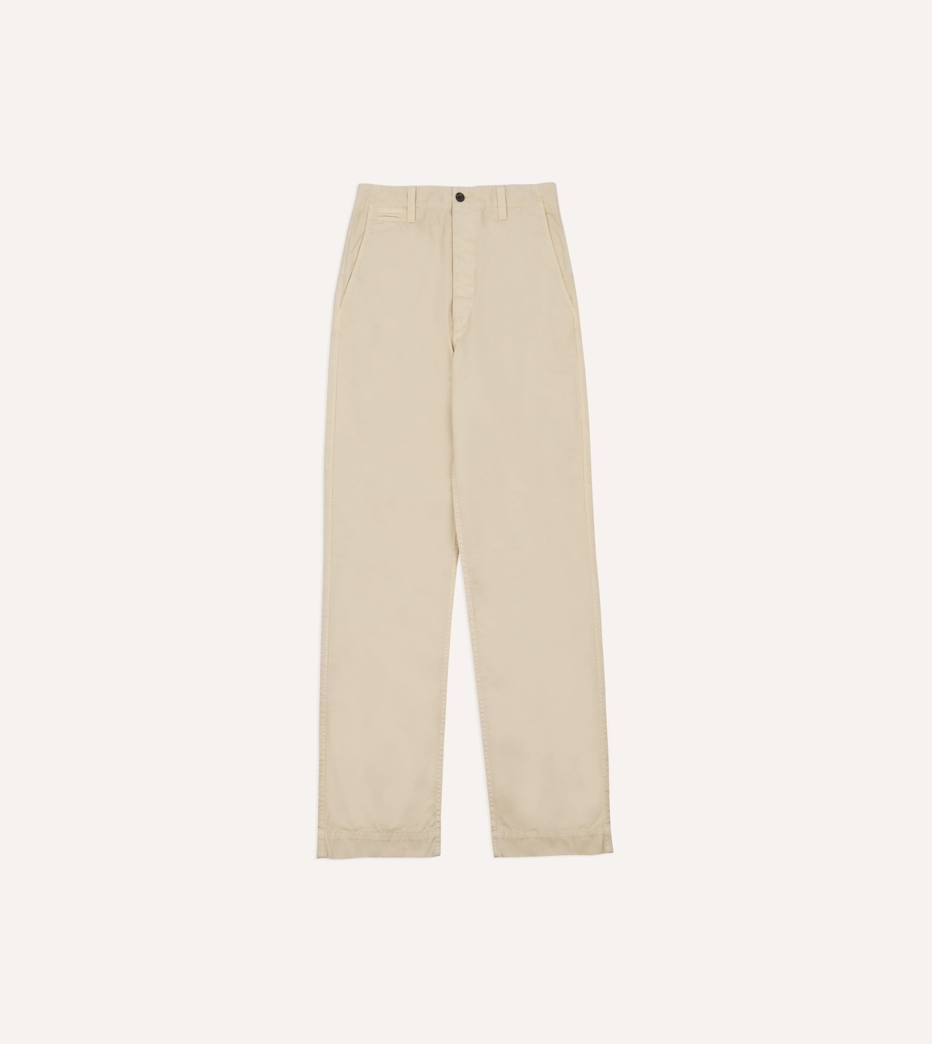 Cut from a weighty 12oz Italian cotton with a gently broken-in handle, these are chinos with a bit of presence. The cloth has just enough structure to hold its shape, yet wears in beautifully over time, the kind of fabric that feels lived-in from day one, and only gets better.