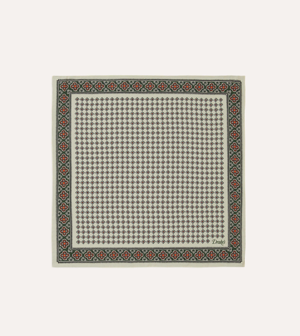 Taken from our extensive design archive, this vintage motif has been vividly applied to a pure silk, creating a dynamic visual contrast however it is folded (or stuffed) in one's pocket.