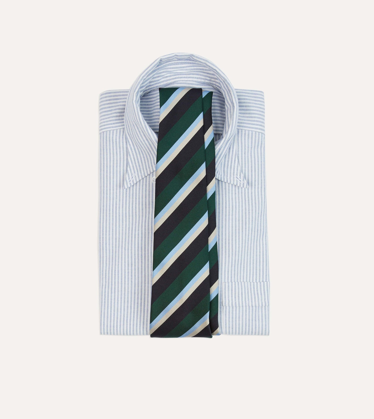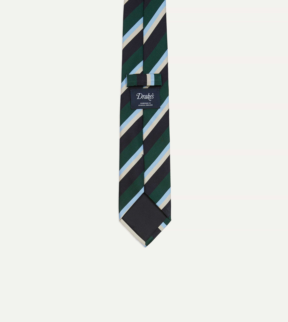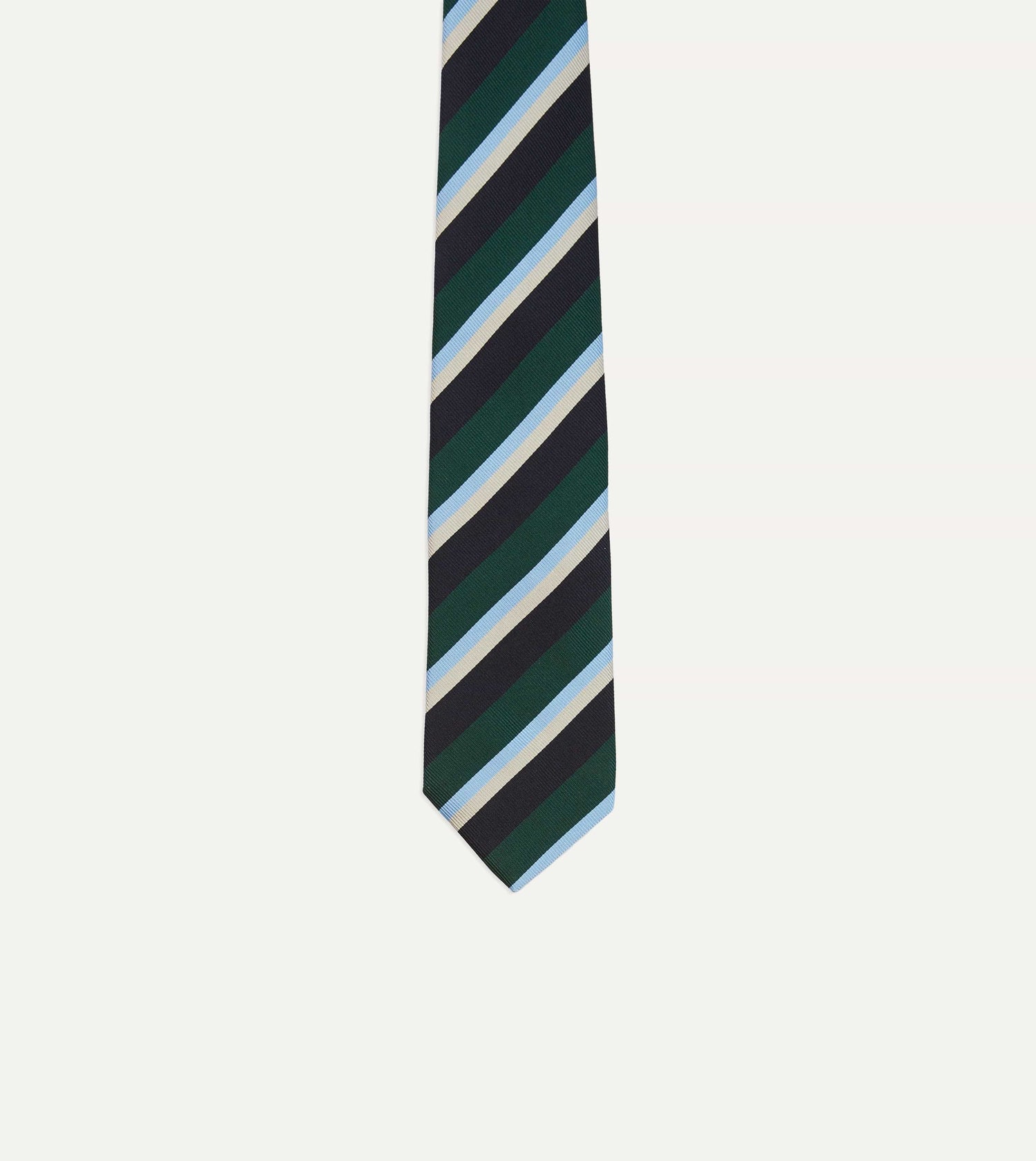 Green, Blue and White Multi Stripe Mogador Silk Tipped Tie