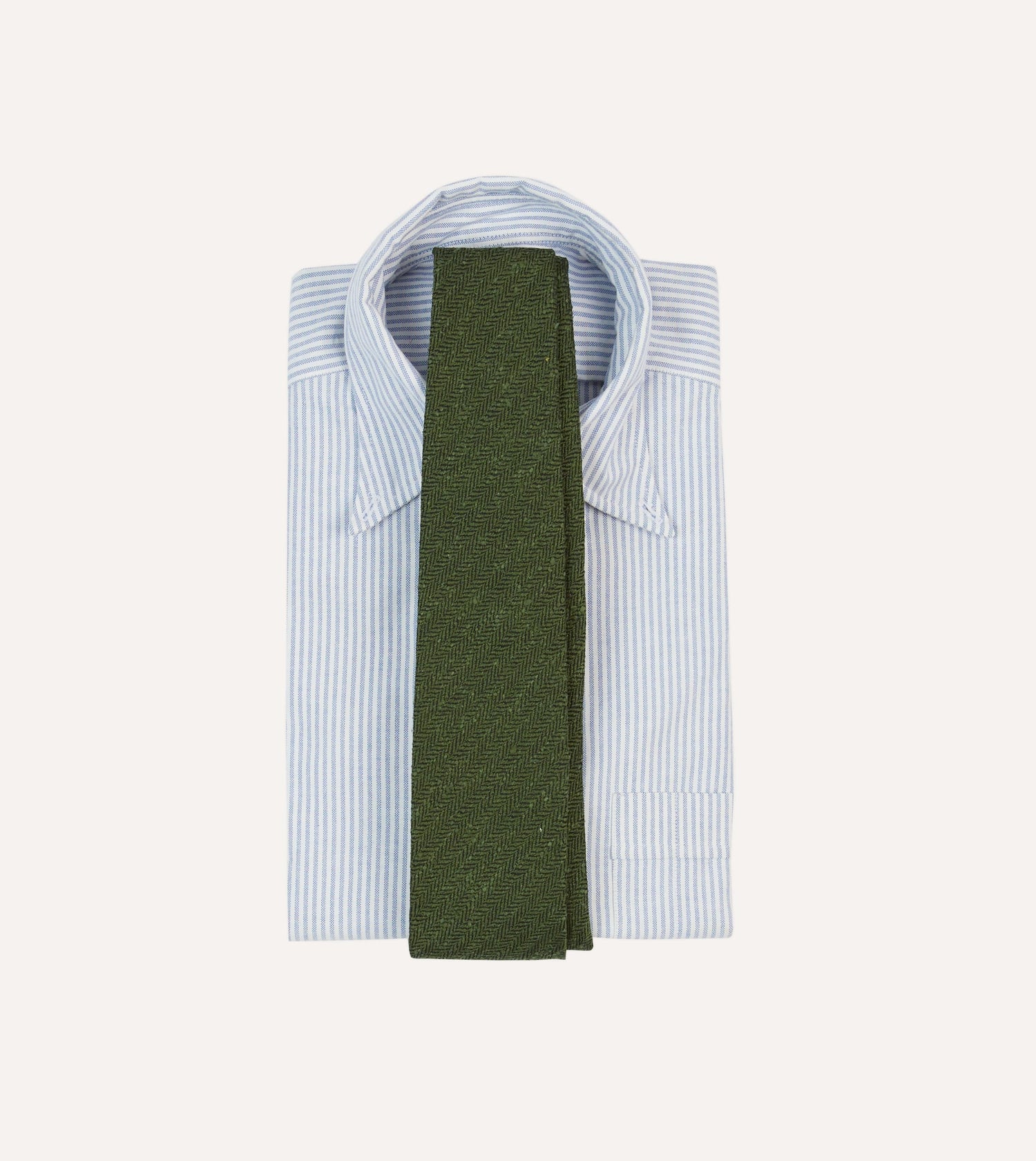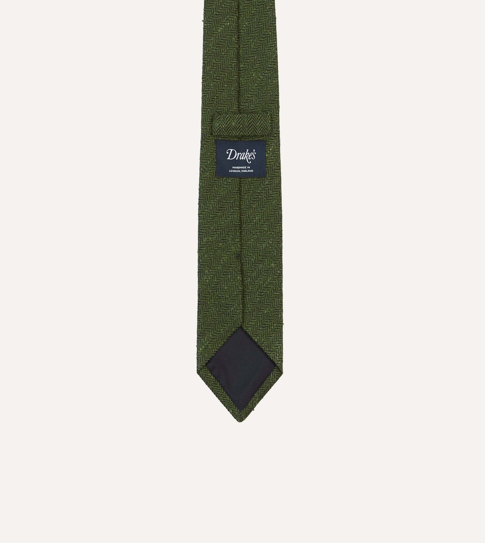Tipping is the fabric sewn on the back of the tip and tail of a tie. Our trademark tipping is present in the form of a pure silk in Drake’s Navy.