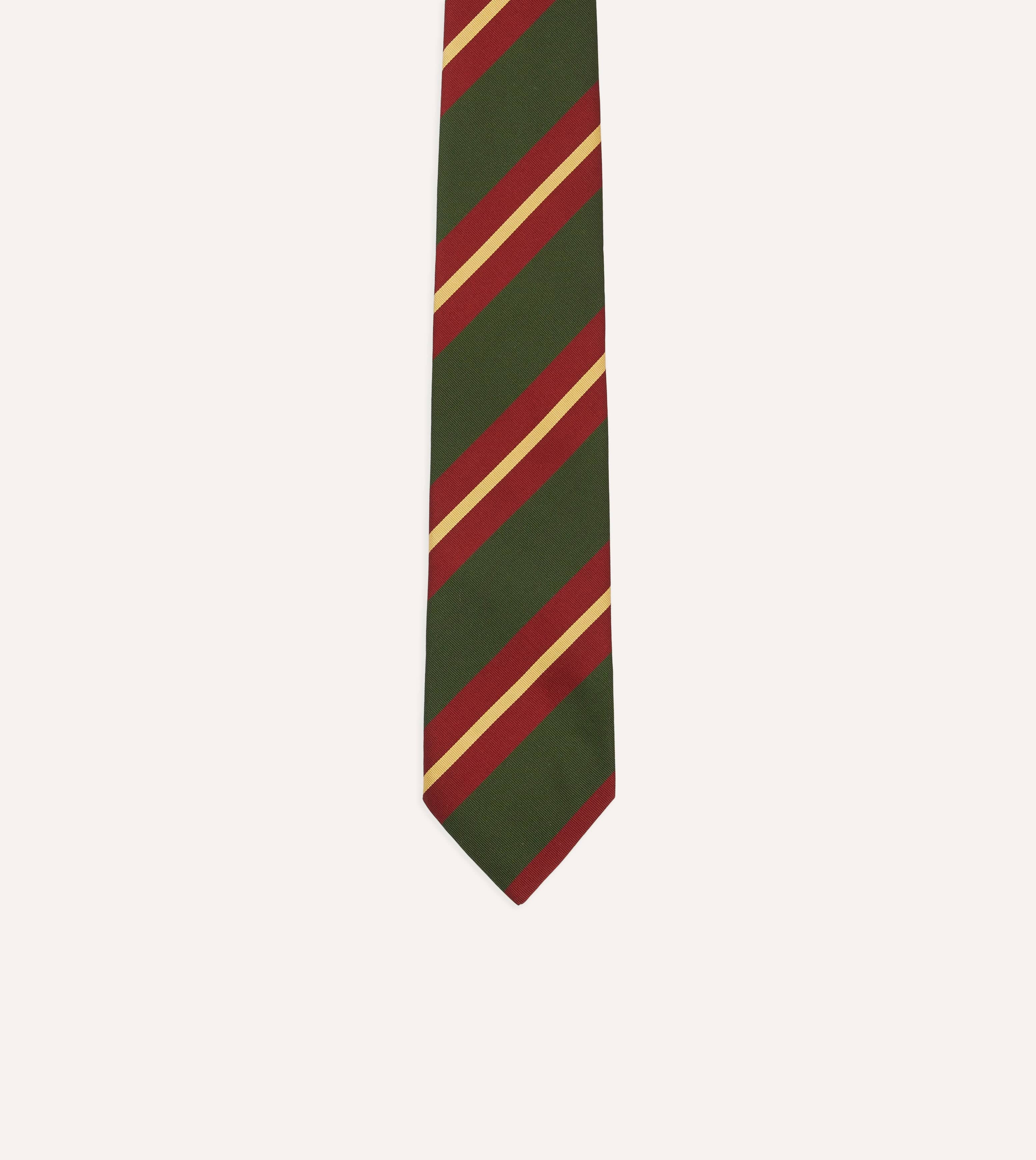 Green, Red and Gold Stripe Mogador Cotton-Silk Tipped Tie