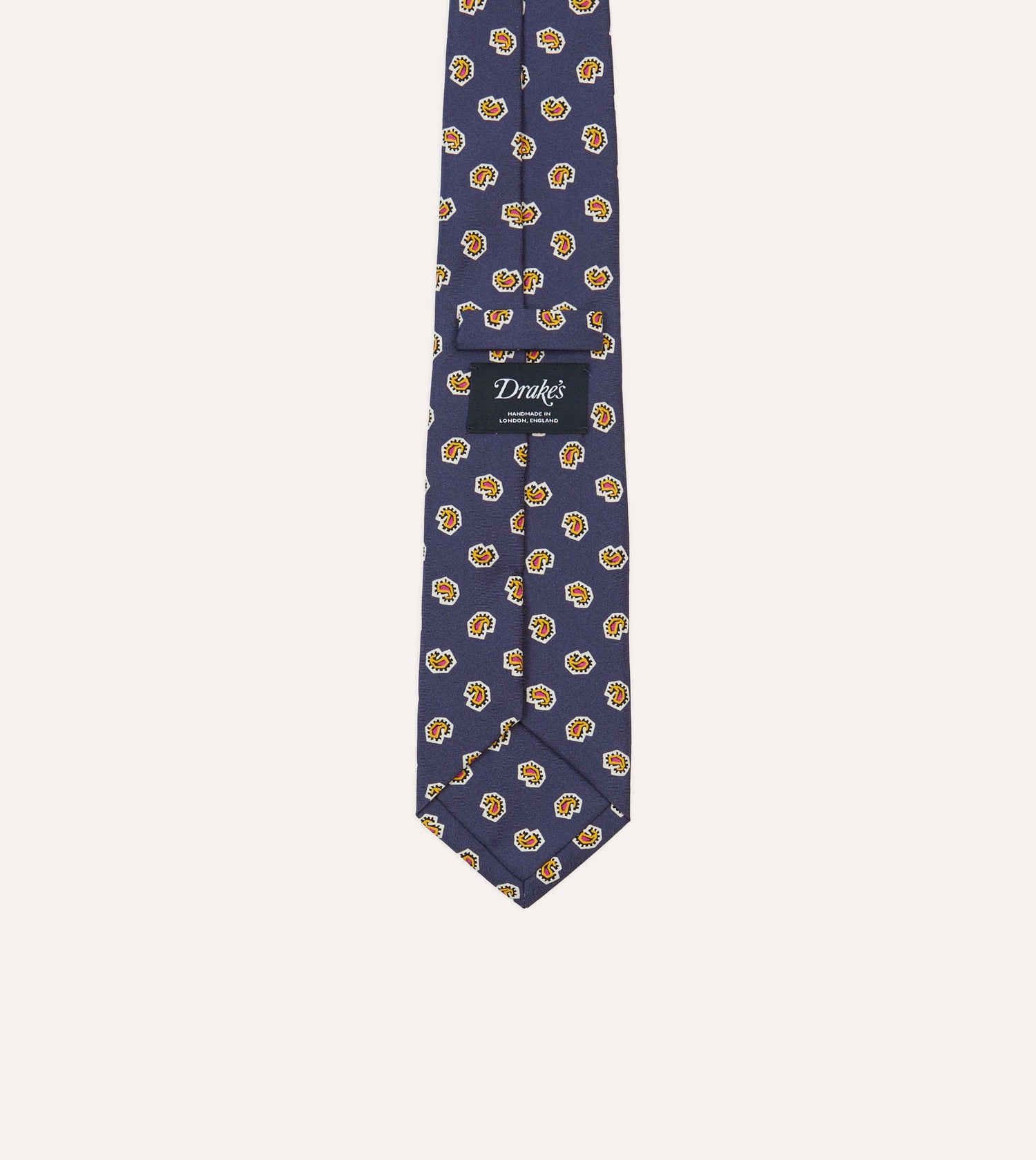 Light Navy Mini Paisley Silk Self-Tipped Tie