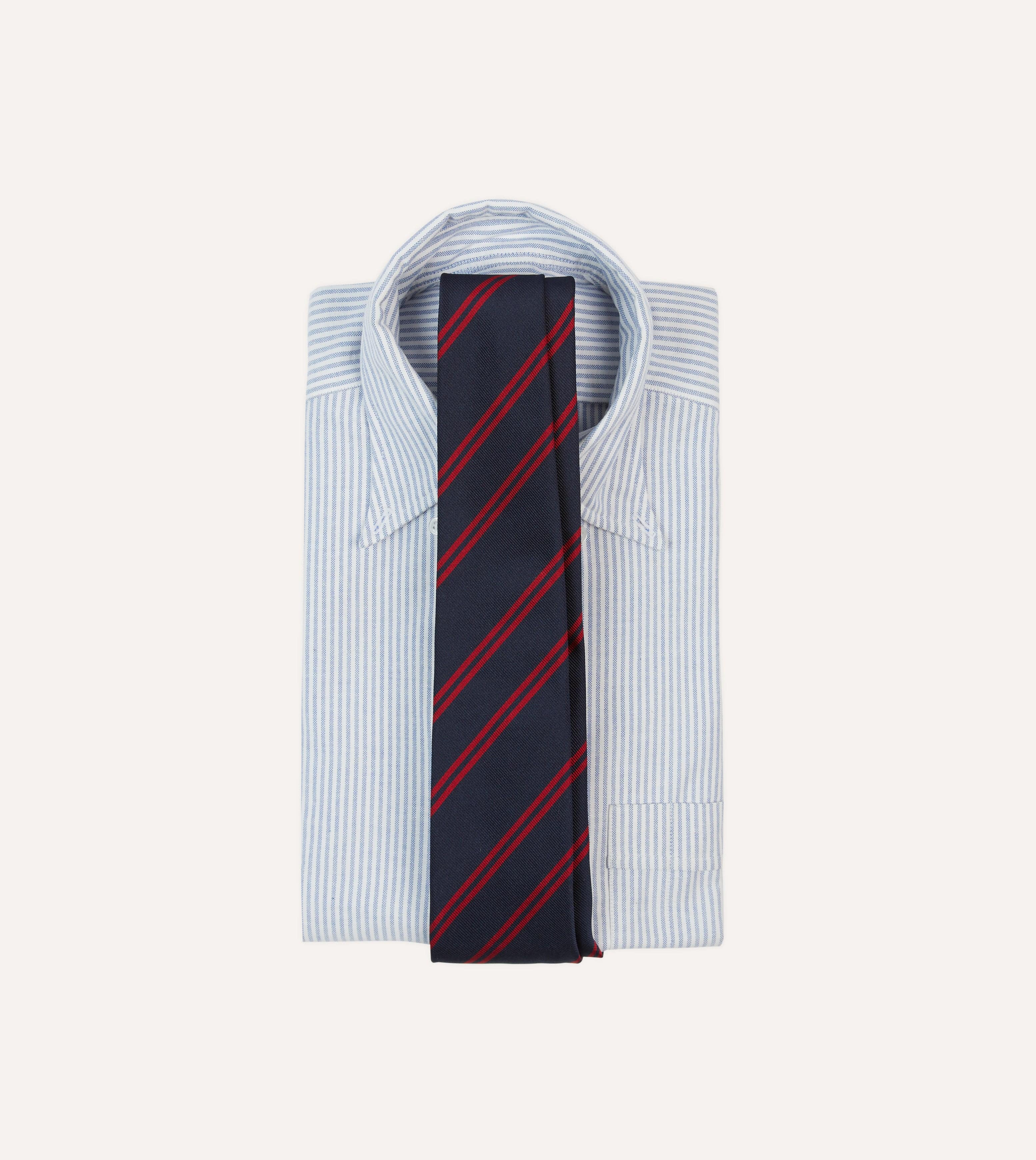 Navy and Red Double Stripe Repp Silk Tipped Tie