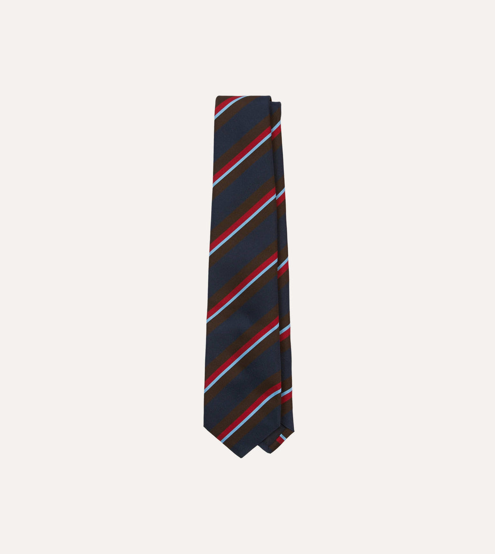 Navy, Brown and Red Stripe Mogador Silk Tipped Tie