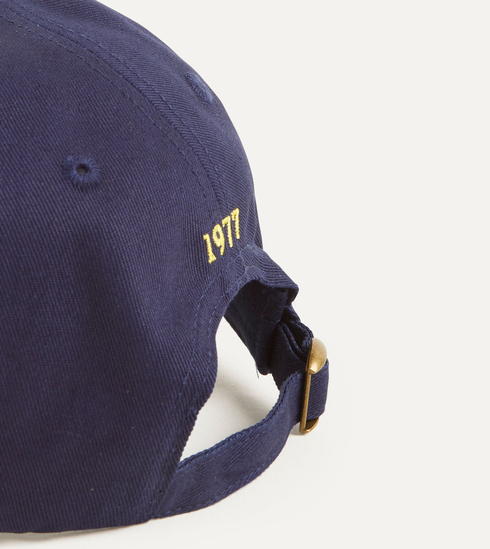 Our six-panel baseball cap returns, inspired by vintage souvenir hats and sports caps we've collected on our travels. With a soft crown and a gently curved peak, it has a relaxed silhouette which brings to mind an earlier era of athletic clothing.