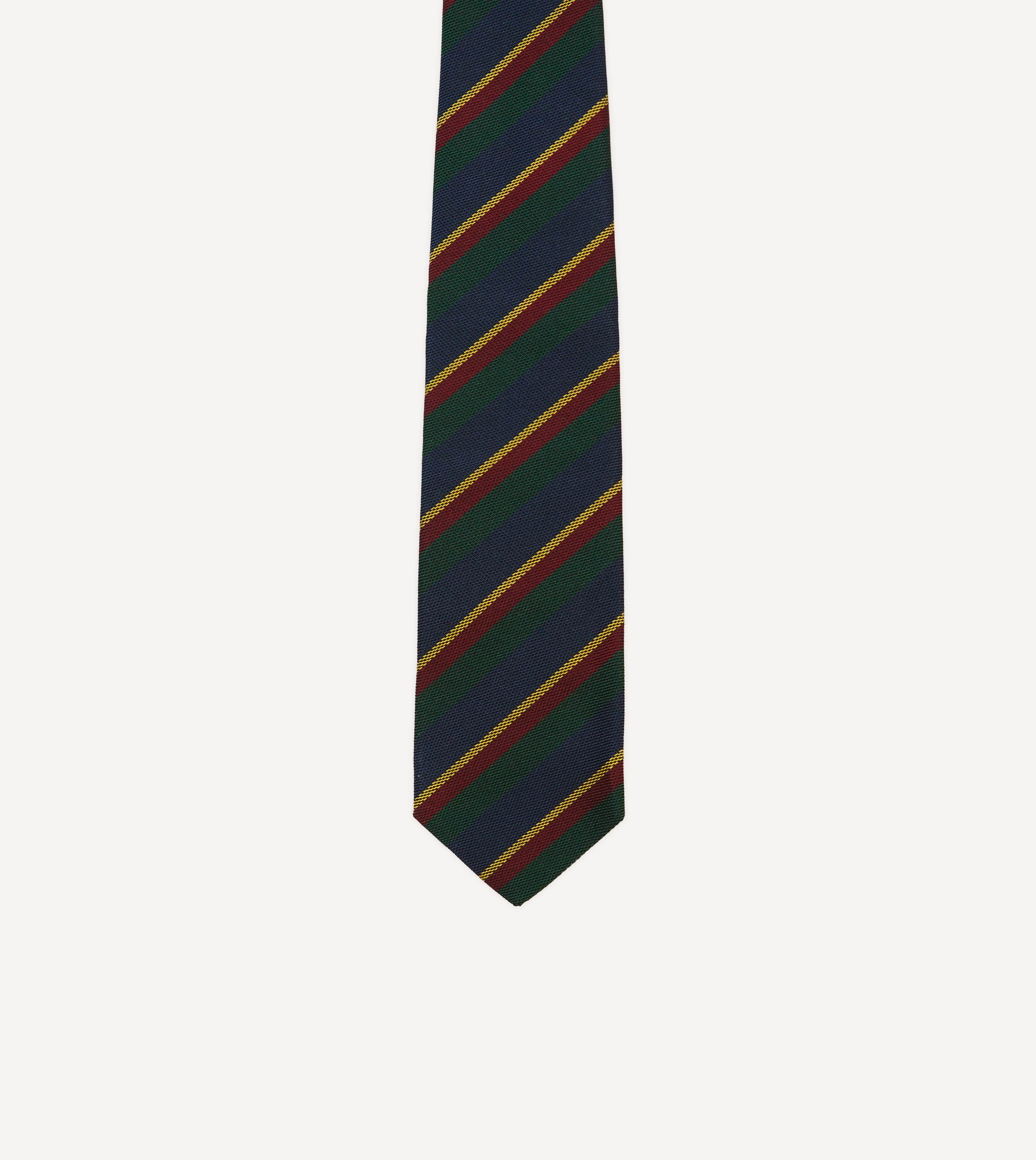 Navy, Green and Yellow Stripe Hand Rolled Silk Grenadine Tie